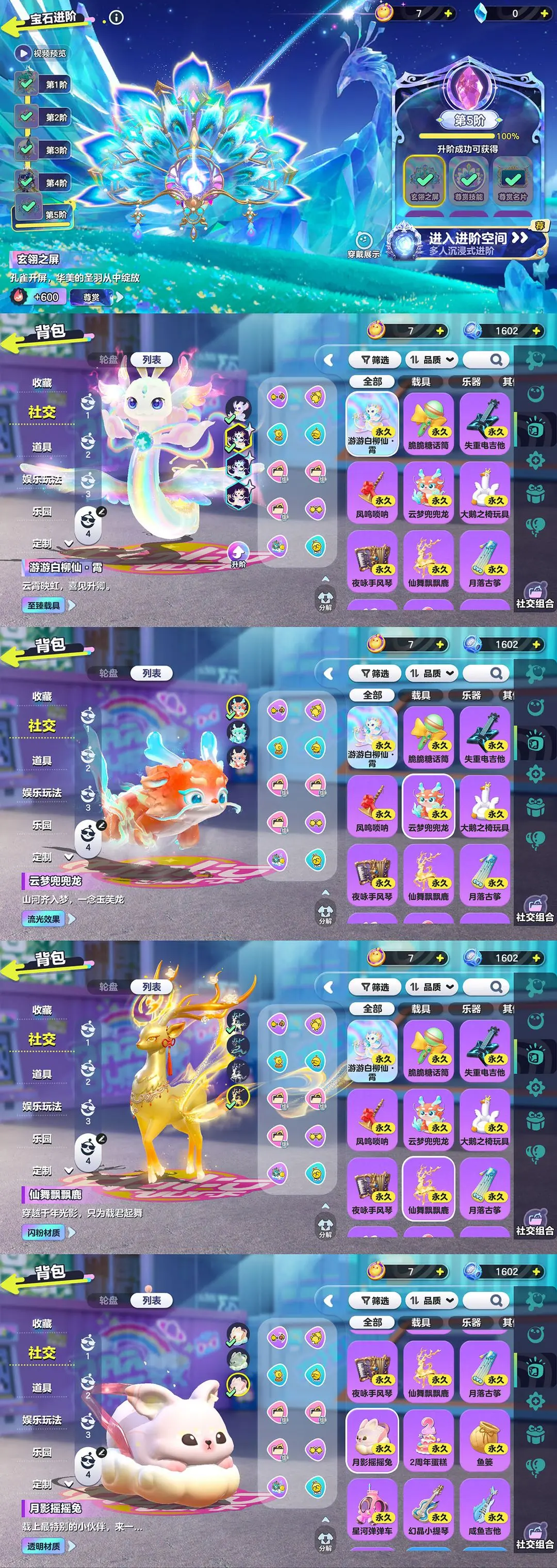 25W潮流51至臻⭐满阶尊赏翠羽灵雀⭐黄金飘飘鹿兜兜龙兔兔车蛇车鲨莉娃白皇后小羊焰心龙女人鱼