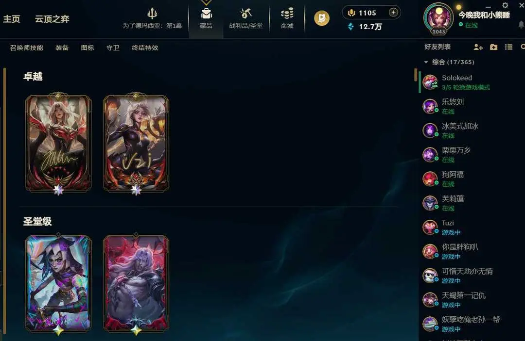 | 角色: 今晚我和小熊睡#0520 | 等级: 2148级 华贵铂金IV |
