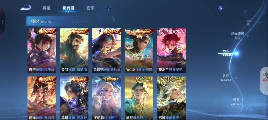 本游戏账号: V10用户,基础段位:非凡王者,英雄多,皮肤多。典藏皮肤4个,感受典藏皮肤带来的优质体验快感,FMVP皮肤4个,尽情享受FMVP皮肤带来的主角光环, 私人所属英雄皮肤有:小乔 天鹅之梦||貂蝉 幻阙歌||虞姬 神鉴启示录||芈月 大秦宣太后孙悟空 零号·赤焰||马可波罗 深海之息||吕布 曦玄引||吕布 天魔缭乱||李白 凤求凰||诸葛亮 武陵仙君||孙尚香 乘龙·问璇玑||孙尚香 音你闪耀||孙尚香 异界灵契||孙尚香 末日机甲||小乔 音你心动||马超 琥珀纪元||墨子 黄金天蝎座||貂蝉 曦玄引||貂蝉 仲夏夜之梦||铠 绛天战甲||瑶 时之祈愿||妲己 青丘·九尾||李信 一念神魔||狄仁杰 神器·狴犴令||关羽 武圣||露娜 霜月吟||露娜 启示之音||鲁班七号 寅虎·瑞焰||兰陵王 默契交锋||大乔 挚爱花嫁||孙策 乘龙·淬吴钩||孙策 挚爱之约||孙策 末日机甲||桑启 鸣野蒿||张良 黄金白羊座||女娲 补天||宫本武藏 地狱之眼||虞姬 启明星使