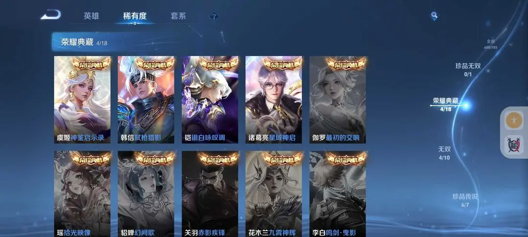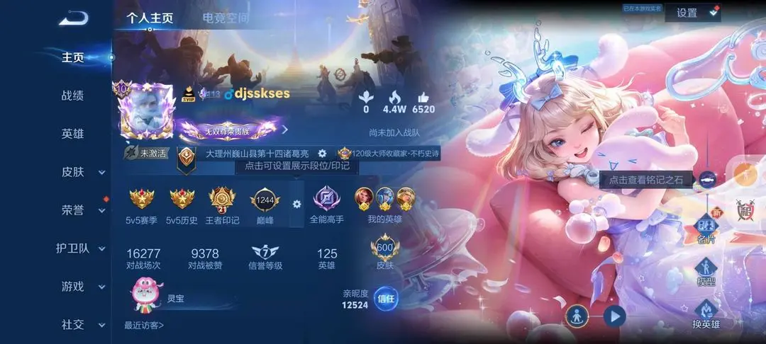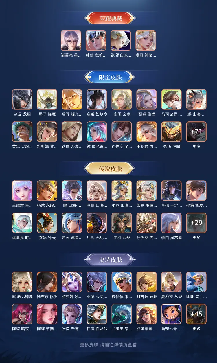 本游戏账号: V10用户,基础段位:荣耀王者,英雄多,皮肤多。典藏皮肤4个,感受典藏皮肤带来的优质体验快感,FMVP皮肤12个,尽情享受FMVP皮肤带来的主角光环, 私人所属英雄皮肤有:韩信 弑枪猎影||诸葛亮 星域神启||虞姬 神鉴启示录||铠 银白咏叹调瑶 大耳狗之梦||安琪拉 酷洛米之心||张飞 兔狲·蓬尾||女娲 愿照·千秋盛||杨玉环 星之鸣奏||虞姬 愿照·岁时盈||澜 愿照·九州拓||云缨 幻光神枪||妲己 愿照·众生和||司空震 愿照·山河定||嬴政 玄雷天君||孙策 时之奇旅||鲁班七号 时之奇旅||鲁班七号 江户川柯南||桑启 鸣野蒿||马可波罗 怪盗基德||王昭君 映山客||庄周 牧神诗旅||马可波罗 妄想实况||孙悟空 零号·赤焰||伽罗 太华||梦奇 胖达荣荣||王昭君 乞巧织情||小乔 音你心动||周瑜 音你心动||孙膑 小动物乐团||蔡文姬 花朝如约||李元芳 飞鸢探春||关羽 武圣||张良 黄金白羊座||铠 冥王哈迪斯||后羿 无尽星芒||云中君