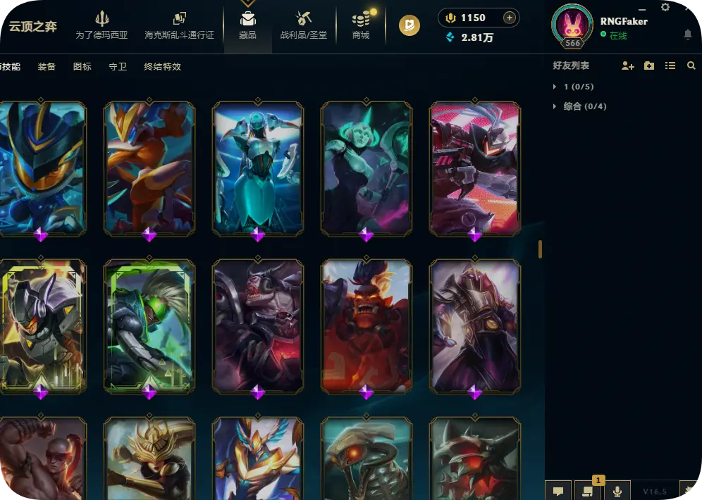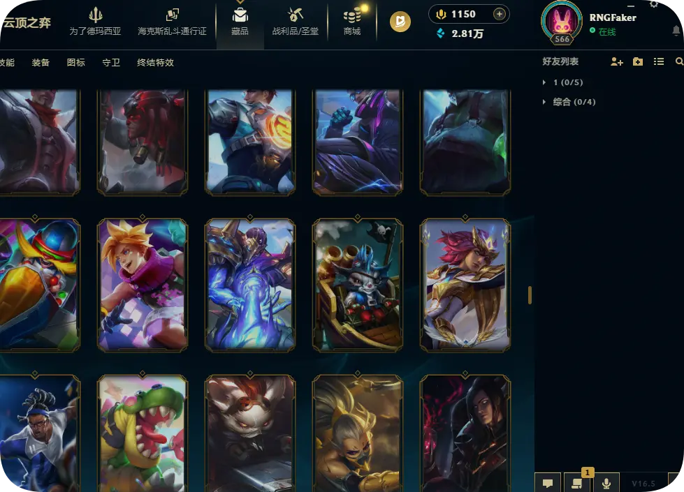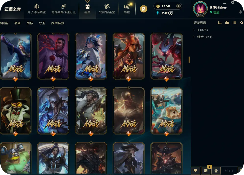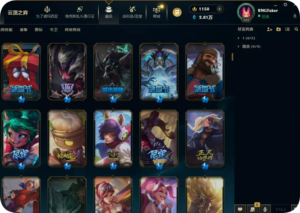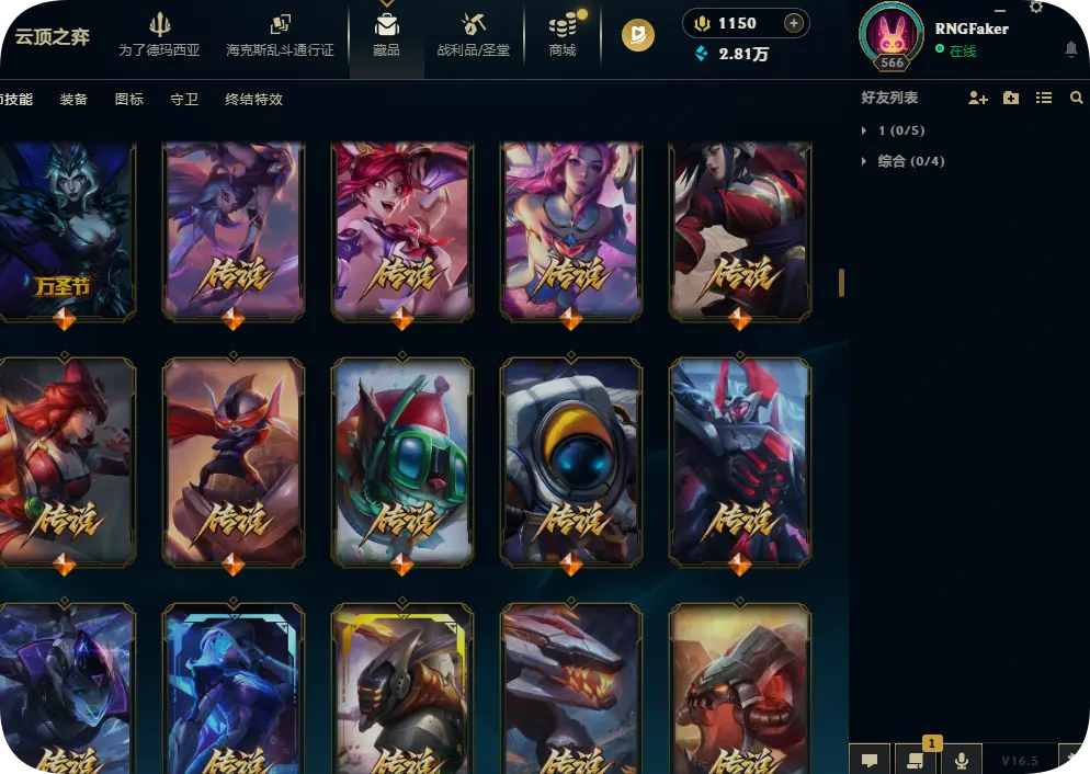1200皮肤黄金可排位双殿堂传奇SKT劫瑞兹神龙瞎灵魂亚索永恩KDA卡莎阿狸阿卡丽海之歌艾希冰雪节套