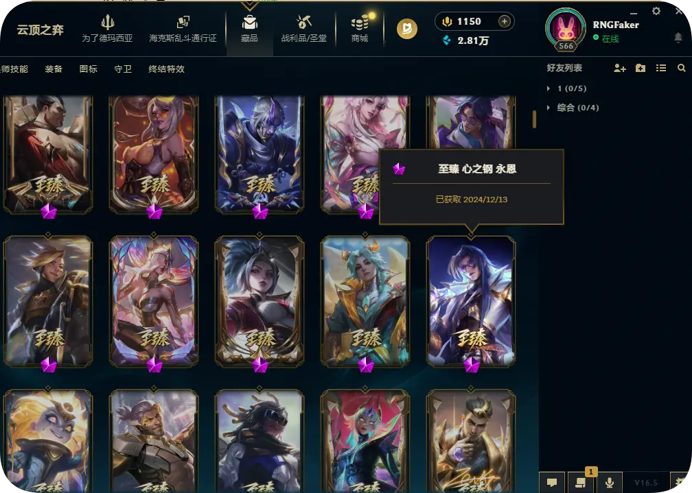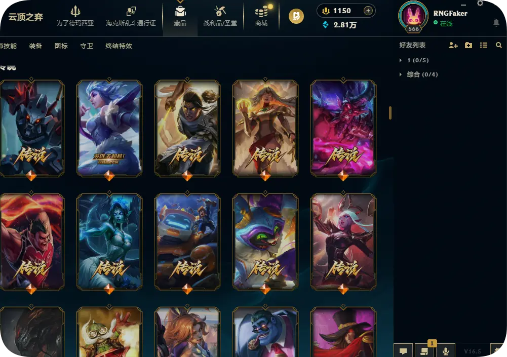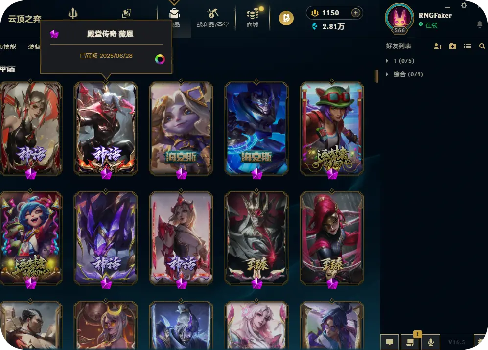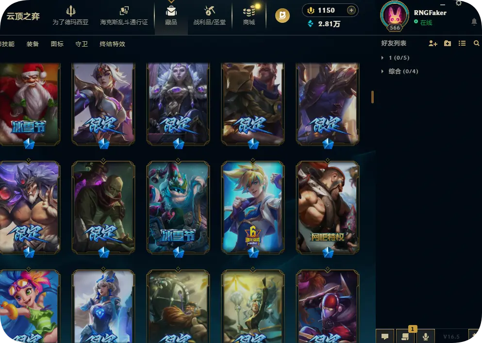 1200皮肤黄金可排位双殿堂传奇SKT劫瑞兹神龙瞎灵魂亚索永恩KDA卡莎阿狸阿卡丽海之歌艾希冰雪节套