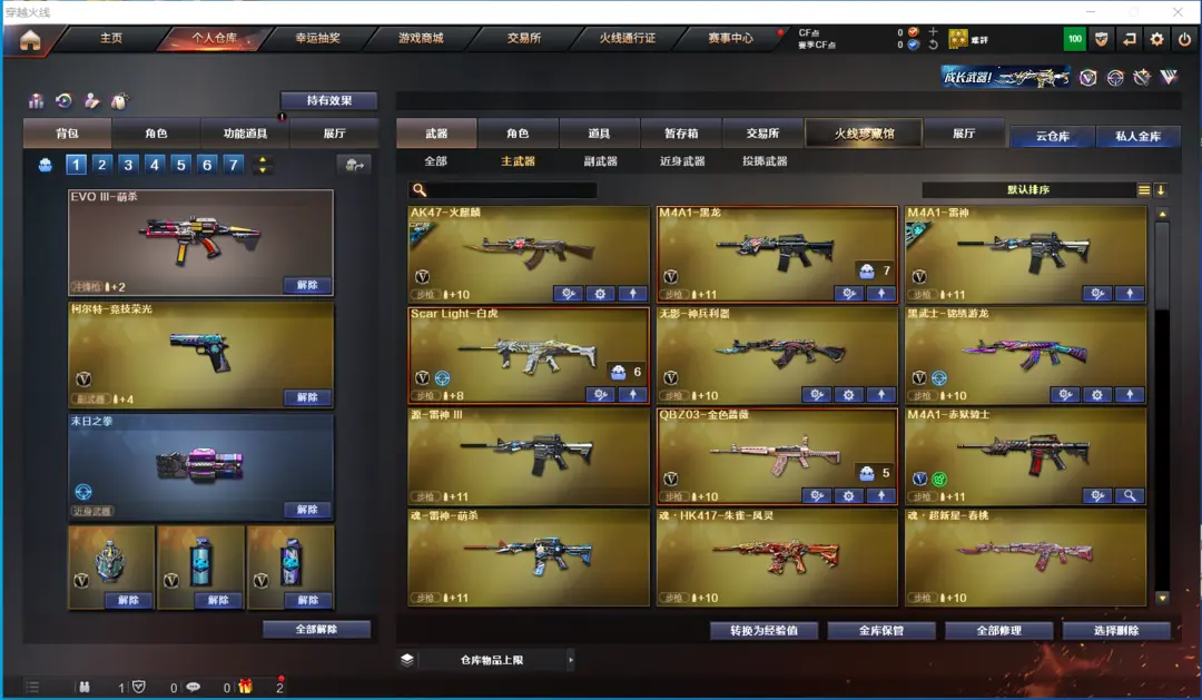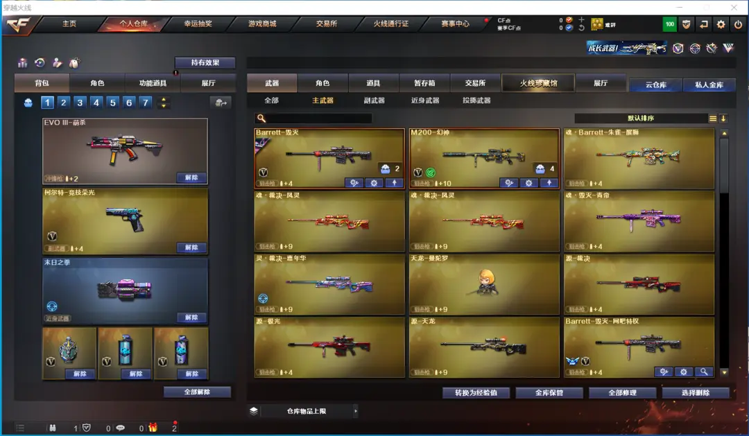 本游戏账号:英雄武器32个; 王者武器1个。 装备不多,但是主武器、副武器、近身武器够用 拥有完美游戏体验。重要的是,特殊装备有:QBZ03-金色蔷薇、Scar Light-白虎、M200-幻神、麒麟刺、AK47-火麒麟、Barrett-毁灭、闪光弹-竞技荣光、烟雾弹-竞技荣光、柯尔特-竞技荣光、加特林-炼狱、M4A1-雷神、M4A1-黑龙、王者岩刺、潘多拉、灵狐者-职业经理、圣诞潘多拉-X、王者影豹、生化弹匣、等,随意畅选。