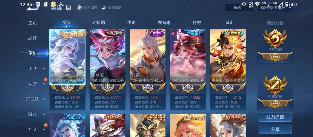 打野67段❤小男神野王❤小国宫本❤万战诸葛 嫦娥 曜 玄策❤6水6无双
