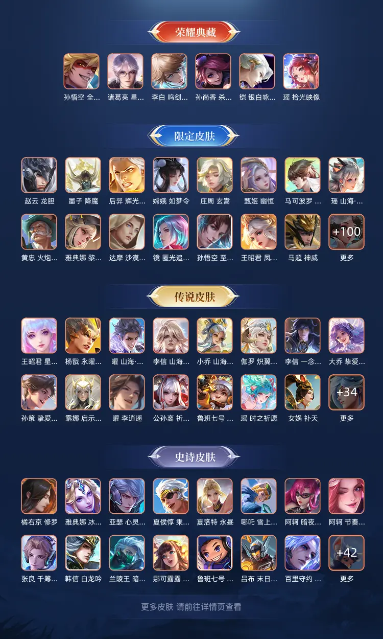 本游戏账号: V10用户,基础段位:无双王者,英雄多,皮肤多。典藏皮肤9个,感受典藏皮肤带来的优质体验快感,FMVP皮肤10个,尽情享受FMVP皮肤带来的主角光环, 私人所属英雄皮肤有:孙尚香 杀手不太冷||孙悟空 全息碎影||鲁班七号 星空梦想||李白 鸣剑·曳影||花木兰 九霄神辉||貂蝉 幻阙歌||小乔 天鹅之梦||韩信 弑枪猎影||芈月 大秦宣太后,等等