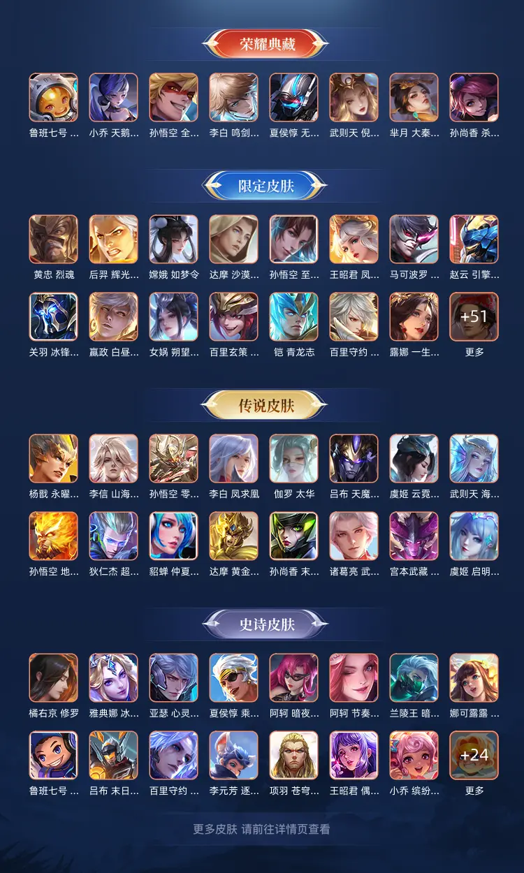 本游戏账号: ,基础段位:最强王者,英雄多,皮肤多。典藏皮肤8个,感受典藏皮肤带来的优质体验快感,FMVP皮肤2个,尽情享受FMVP皮肤带来的主角光环, 私人所属英雄皮肤有:李白 鸣剑·曳影||武则天 倪克斯神谕||夏侯惇 无限飓风号||小乔 天鹅之梦||鲁班七号 星空梦想||孙尚香 杀手不太冷||孙悟空 全息碎影||芈月 大秦宣太后桑启 鸣野蒿||艾琳 觅芳踪||李信 山海·炽霜斩||虞姬 启明星使||孙悟空 零号·赤焰||孙尚香 末日机甲||貂蝉 仲夏夜之梦||宫本武藏 地狱之眼||达摩 黄金狮子座||虞姬 云霓雀翎||狄仁杰 超时空战士||吕布 天魔缭乱||诸葛亮 武陵仙君||李白 凤求凰||杨戬 永曜之星||武则天 海洋之心||伽罗 太华||孙悟空 地狱火,等等