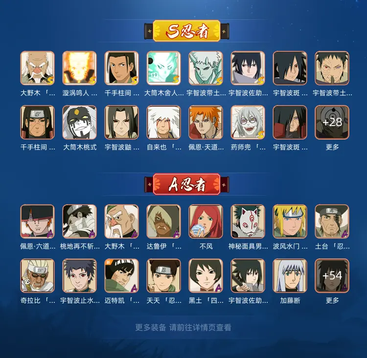 喜欢请收藏嘻嘻,搜索卍(拼音wan)还有其他账号。 本号请登入54区 允许排位 2000w战斗力 s忍者:仙人兜,京剧自来也,秽土转生班,大野木,白面具,秽土扉间,百豪纲手,,自来也,猿飞日斩,纲手,波风水门,秽土转生水门,秽土转生猿飞日斩,长门,千手柱间,大蛇丸,宇智波班,四代目雷影,天道,千手扉间,面具男,须佐鼬,仙自来也。 a忍者:加藤断,秽土转生迪达拉,九尾化鸣人,角都晓创生,千代近松十人卫,半蛇斗篷药师兜,忍界大战我爱罗,角都,晓大蛇丸,五代水影照美冥,鹰佐助,迪达拉,鼬,小南,止水,神威卡卡西,百豪小樱,团藏,仙鸣,奇拉比,角都地怨虞,忍界大战勘九郎,我爱罗,鬼鲛,阿斯玛,飞段,黑飞段,凯,蝎,再不斩,年轻猿飞日斩。