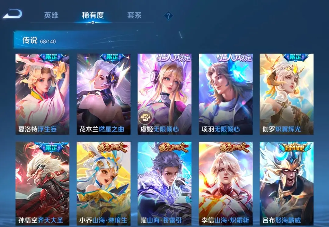 本游戏账号: V10用户,基础段位:非凡王者,英雄多,皮肤多。典藏皮肤4个,感受典藏皮肤带来的优质体验快感,FMVP皮肤10个,尽情享受FMVP皮肤带来的主角光环, 私人所属英雄皮肤有:铠 银白咏叹调||孙尚香 杀手不太冷||李白 鸣剑·曳影||貂蝉 幻阙歌曜 山海·苍雷引||曜 李逍遥||铠 绛天战甲||孙悟空 零号·赤焰||马超 琥珀纪元||吕布 遇见神鼓||诸葛亮 鹤羽星尊||孙尚香 末日机甲||孙尚香 乘龙·问璇玑||墨子 黄金天蝎座||孙策 乘龙·淬吴钩||孙策 末日机甲||李白 诗剑行||貂蝉 仲夏夜之梦||李信 山海·炽霜斩||李信 一念神魔||公孙离 记忆之芯||狄仁杰 神器·狴犴令||狄仁杰 超时空战士||夏洛特 浮生妄||宫本武藏 地狱之眼||宫本武藏 惊梅引||典韦 战鼓燎原||露娜 霜月吟||后羿 黄金射手座||虞姬 云霓雀翎||虞姬 无限倾心||虞姬 启明星使||项羽 无限倾心||张飞 百相守梦||小乔 山海·琳琅生||小乔 音你心动||艾琳 觅芳踪||