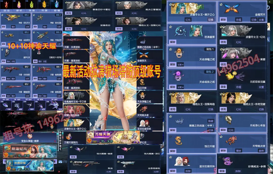 〖✅帮解安全,看最后面〗【图片定期更新道具立即氪金】【新赛季秘境33关,秘境基础957,45星冰,风,光神武】【新增道具介绍✅】:【神御专属新皮肤全套+宠物皮肤】【涅槃女王+波塞冬女王-潮夕之心,冰火金蝰翼,泳装潮夕配件】〖返利拉满,神谕套全核心,元初双极羽翼,天命渊瞳戒,波塞冬女王-幻化〗【崩解者-方圜阵,陆行虎鲨-回廊界域丨黑沼-重楼流光丨〖莱娜 | 天命观吾之戒〗【最新变身女英雄望舒+璃璎丨全息搭建枪+】【最新塔防伴生灵霜精芙洛娅,圣翼魅影双姝,先行物:无垢澄心圣盔,升级合体蓝雨玄扇双姝伴生灵】婚纱角色两个:暮雪恋纱卡米拉,裁决之誓雷加丨最新头盔冰雪皇冠霜霆之怒战盔✅天耀套新皮肤永夜迷航带玄耀灵汐-织梦者皮肤全套【全新✅涅槃再临精绝女王,蚀日天蝰坐骑,蛇灵霞帔,】新英雄焚霄,至臻夜后永久加超核帝冕名片,五蜉灵天耀全套满配,充值返利新涅槃女王角色戒指翅膀全拉满,圣翼魅影双姝,(神冕圣翼幽冥魅影合体)〗天穹裁决者,【具体道具点开图滑轮放大查看】〖✅帮解安全,珈薇:cxnlisa〗