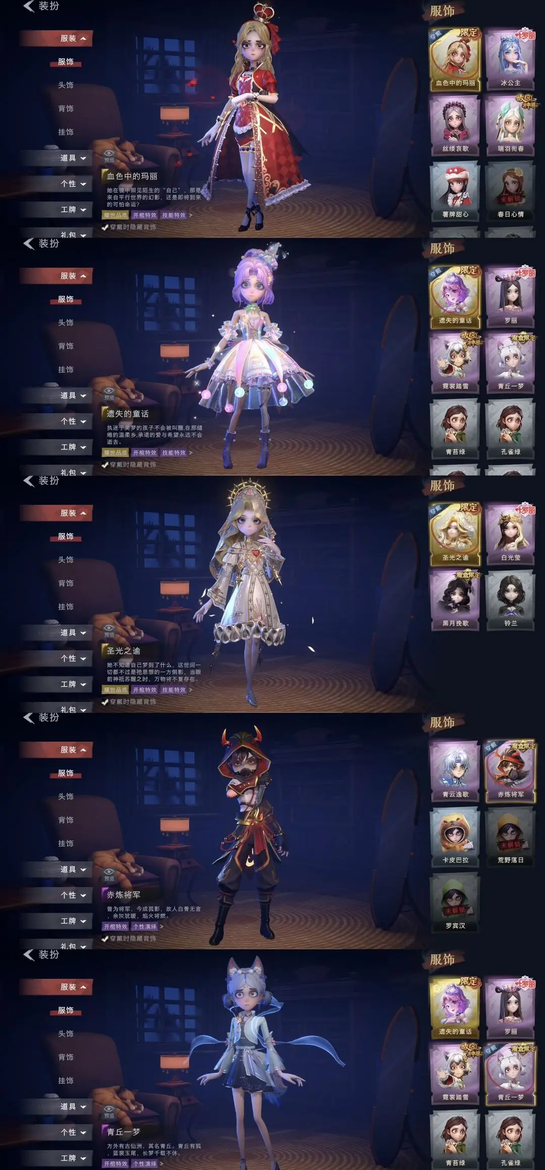 金皮限定:遗失的童话,圣光之谕,血色玛丽,镜花辞,莲华渡。