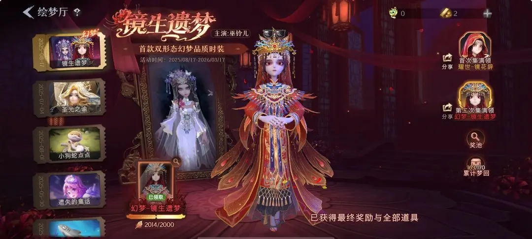 全图鉴真全皮❤️莲华渡❤️镜生遗梦❤️1红5金20紫33道具皮【兔宝+满舞蹈+满氪条+满魔盒】