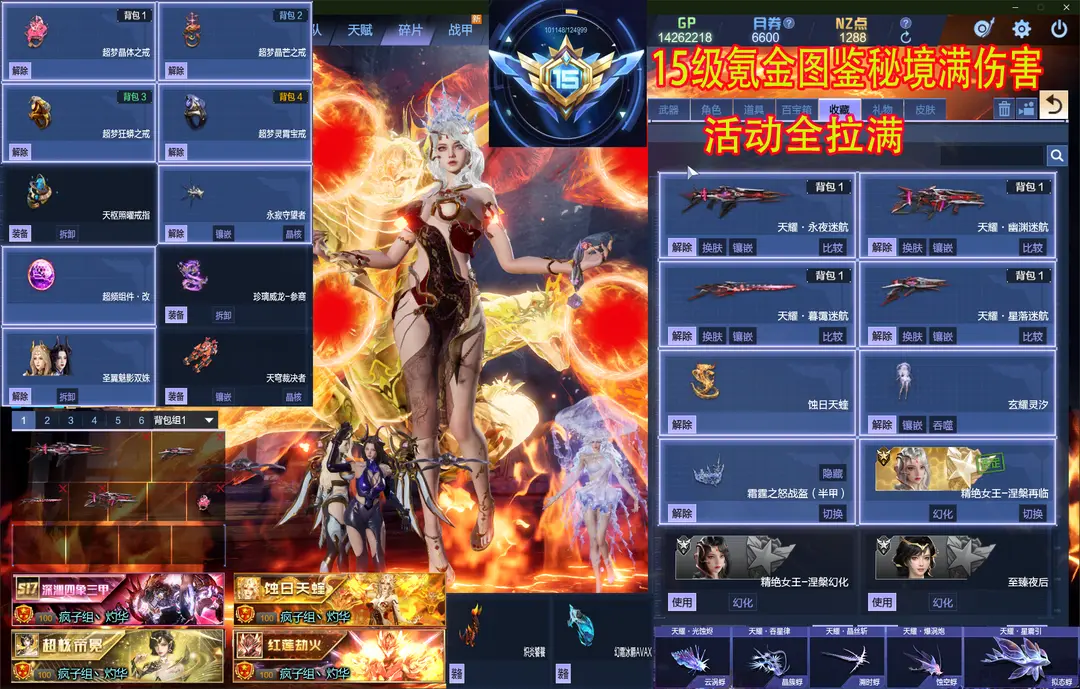 15级图鉴✅天命莱娜71关满爆刃㊺星光962伤望舒璃璎玄械冰精灵蓝羽双甲双红再生✅涅槃女王金蛇霜霆