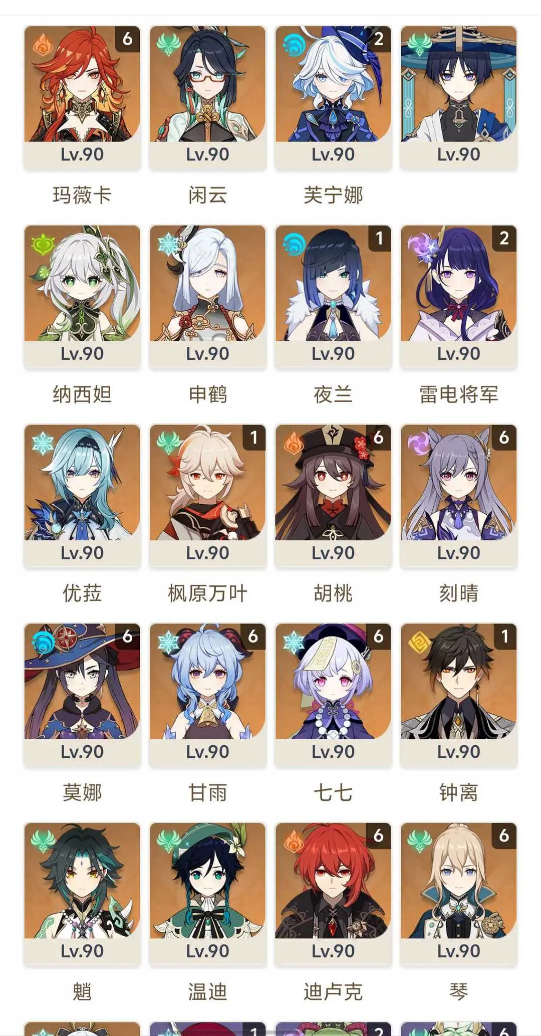 超万氪满命火神玛薇卡满命甘雨满命胡桃满命莫娜满命琴满命七满命刻晴芙宁娜