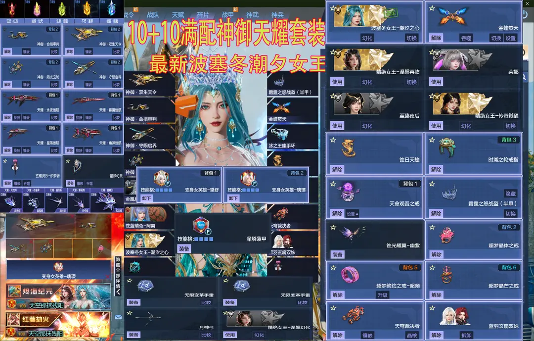 最强第一✅新陷阱潮汐波塞冬⑩+⑩神谕天耀套三女王92关莱娜✅璃璎㊺光玄烬械双姝✅火焰甲涅槃金蛇女