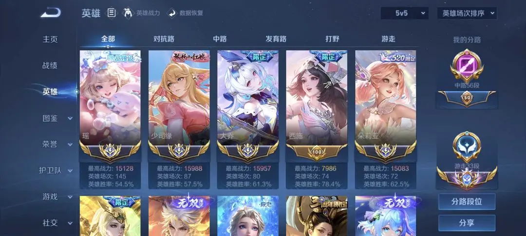 不禁言纯满皮肤马年6限定绝版巅峰游走大国服五大国服瑶少司缘朵莉亚女号/安琪拉颠倒童话李信无双满福星
