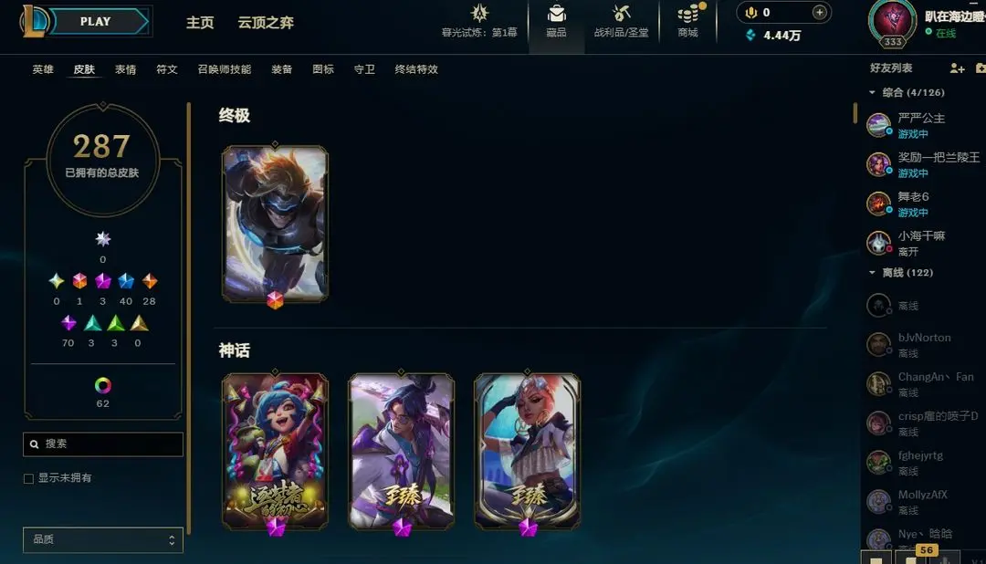 | 角色: 趴在海边瞪你的鱼#16053 | 等级: 344级 华贵铂金III |
