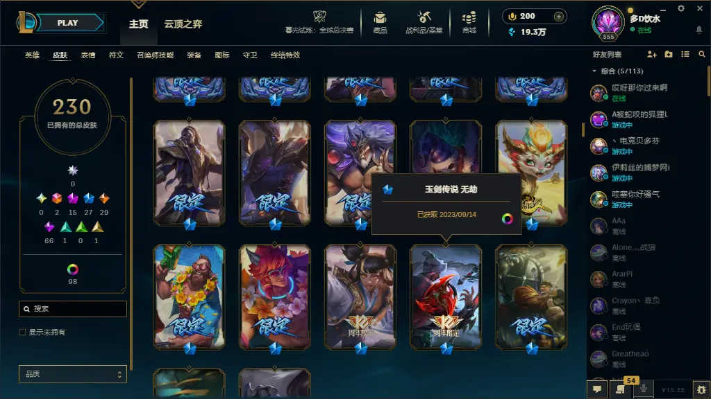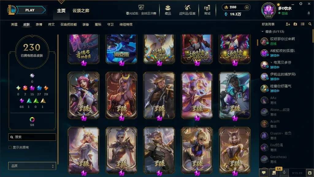 | 英雄: 172 | 皮肤: 230 |