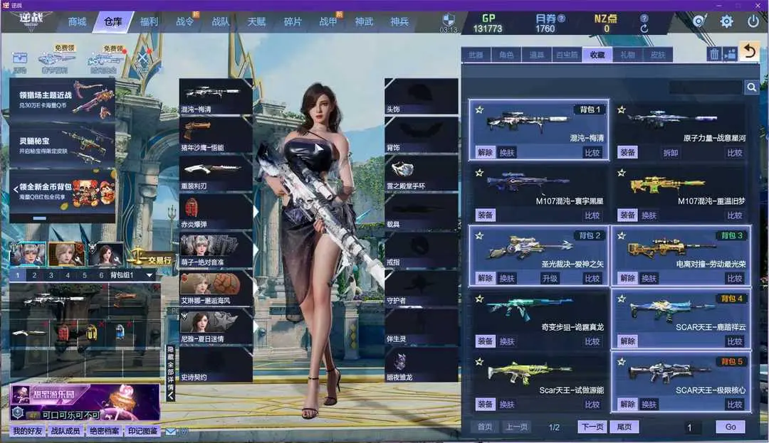 pvp爆破全装:SCAR天王4把(极限核心、月面狂想、试做源能、粉色柔情、鹿踏祥云),朱雀1把(、比翼双飞、试做源能、兰香、死亡艺术、冰雪竞速),电离对撞,原子力量—战意星河,混沌2把(梅清、重温旧梦、试做源能、螺旋动力),圣光裁决(庚子新年、爱神之失、重温旧梦),M4A1赤鬼满配(情意如丝、菊韵、蒸汽幻想、试做源能),奇变步狙(诡霆真龙),AK白虎—极北科技,沙鹰—西部之王2把,黄金之翼2把(蔷薇独角兽),虎王套,鹰王套,重装先锋,玩具手枪—无所不误,短刀—水晶之恋,速冻柳刃刀,审判之刃5把,小猪手枪。