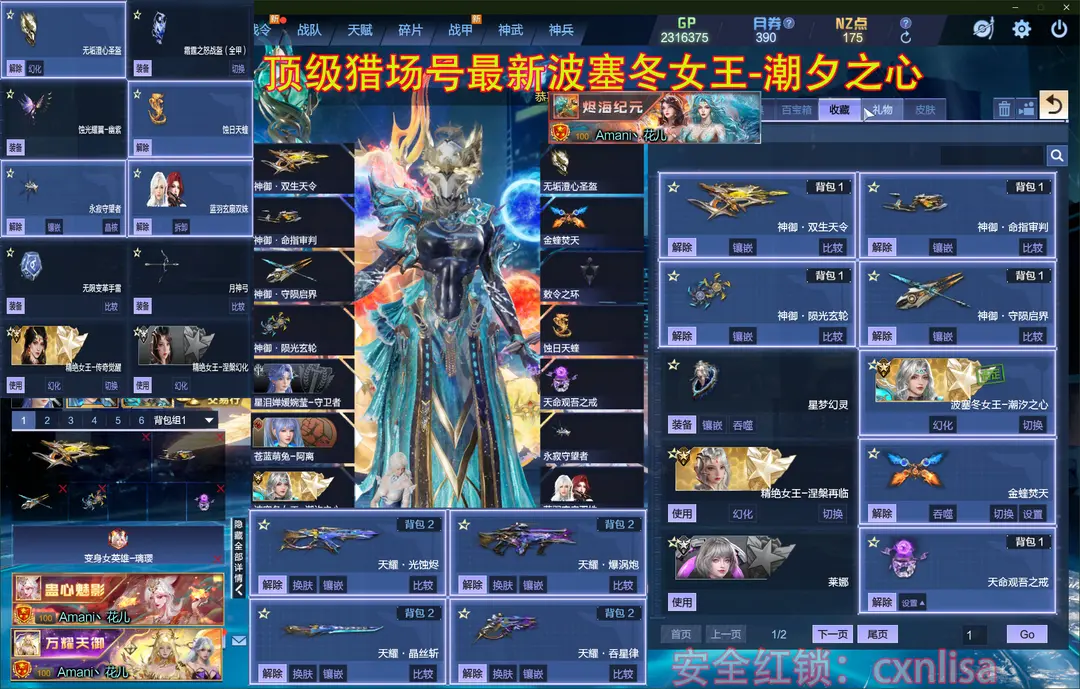 〖安全模式可帮解除,点击连系号主发送安全码等待,或者看第一张图右下角咖〗〖秘境五转武装955基础92关45星光,风,冰神武〗〖✅新增道具✅】:【冰火双色金蝰焚天翼,波塞冬女王-潮夕之心+涅槃再临+传奇觉醒3女王】【神御套、天耀套-全皮满核心10+10】【最新变身女英雄望舒+璃璎丨全息搭建枪+焦油】【无垢澄心圣盔,蓝雨玄扇双姝,冰灵霜精】丨最新头盔冰雪皇冠霜霆之怒战盔丨 涅槃幻化,涅槃再临,蚀日天蝰,蛇灵霞帔,永寂守护