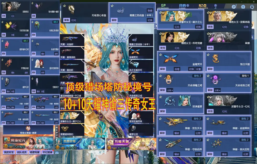 无安全模式丨新坐骑潮汐波塞冬女王〖⑩+⑩神谕套天耀套天命戒莱娜〗望舒+璃璎四臂铠丨涅槃女王金蛇双姝