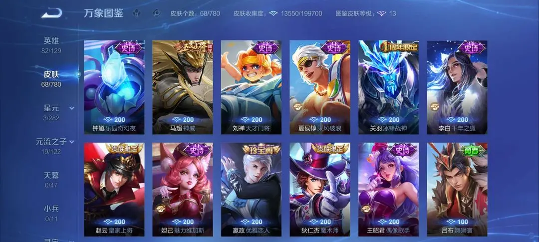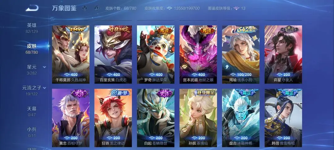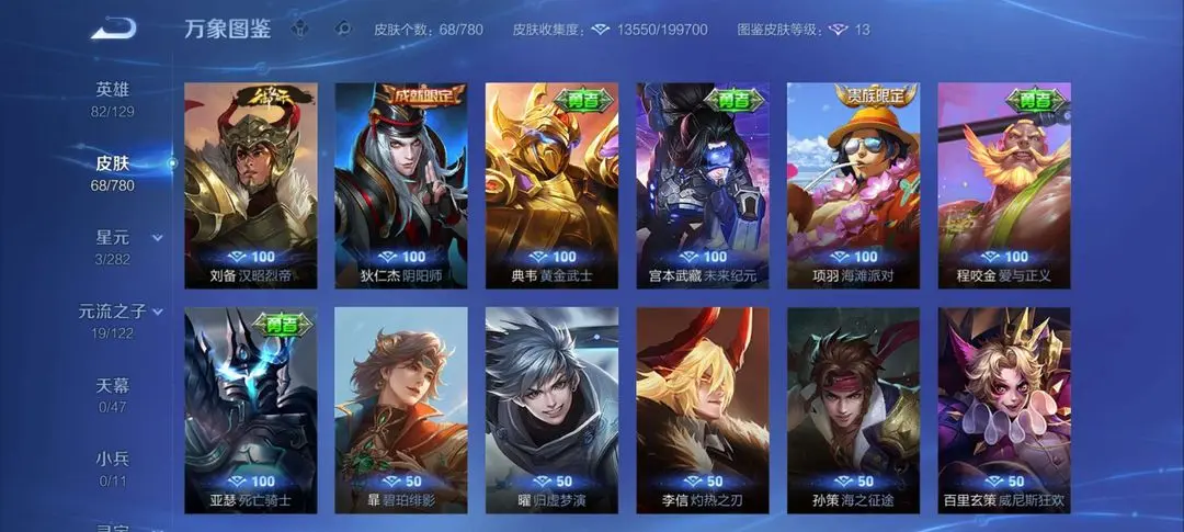 | 英雄: 89 | 皮肤: 73 |