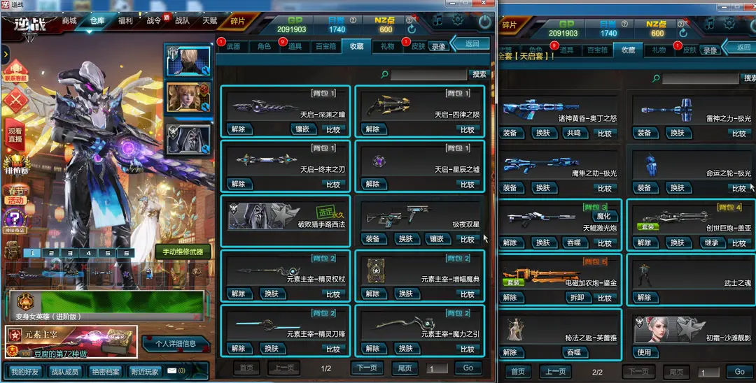 天启套元素套天鲲套诸神套创世套天神套深渊瞳极夜双星元素套芙蕾雅光辉羽翼虚空面具武士魂美杜莎空间撕裂者