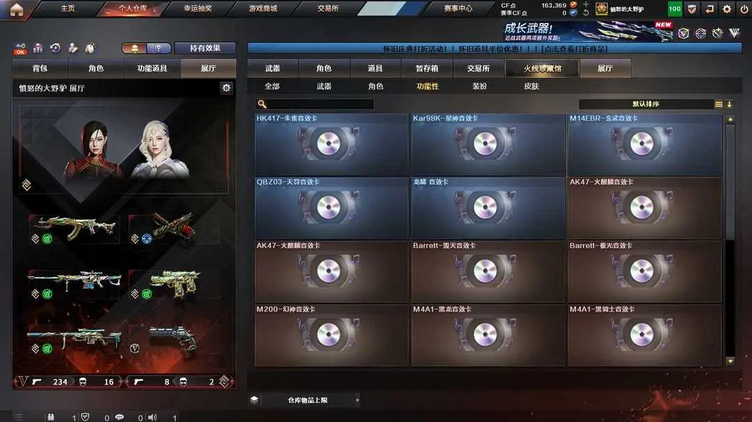 >>>本游戏账号:传说武器10个;英雄武器394个; 王者武器78个。 特殊装备有:传说浩劫、传说女帝、传说幽冥、传说圣灵、传说辉光、传说影煞、传说破晓、传说灵眸、传说暗裔、M200-幻神、USP-雷暴、荣耀世冠-柯尔特、王者炎心、王者冰魄、王者之霆、王者幻神、王者芳薇、各种皮肤音效卡等,随意畅选。