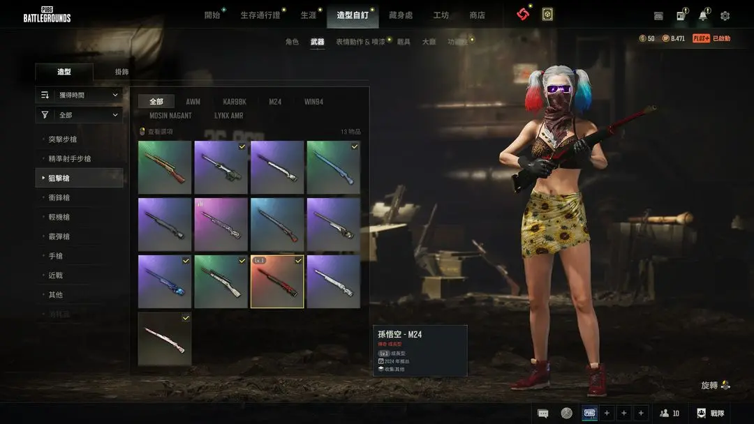 保时捷卡宴马丁跑车双马尾绿头黑鬼四级弥诺AUG悟空M24沙僧套宝藏猎人762SKS韦神枫叶M4