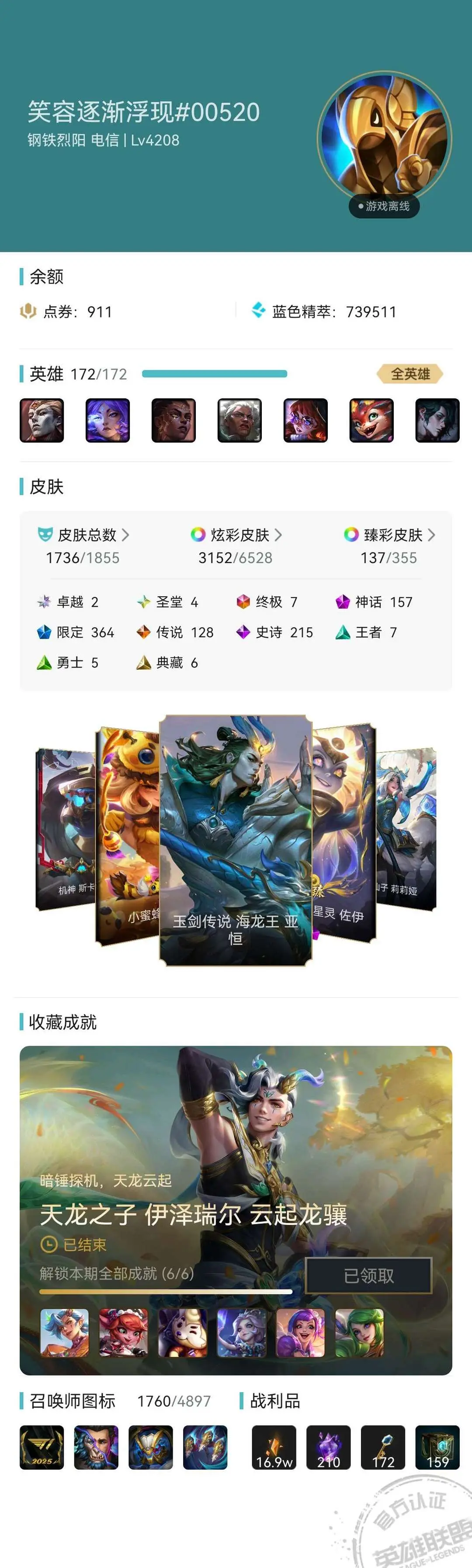 | 角色: 笑容逐渐浮现#00520 | 等级: 4320级 流光翡翠IV |