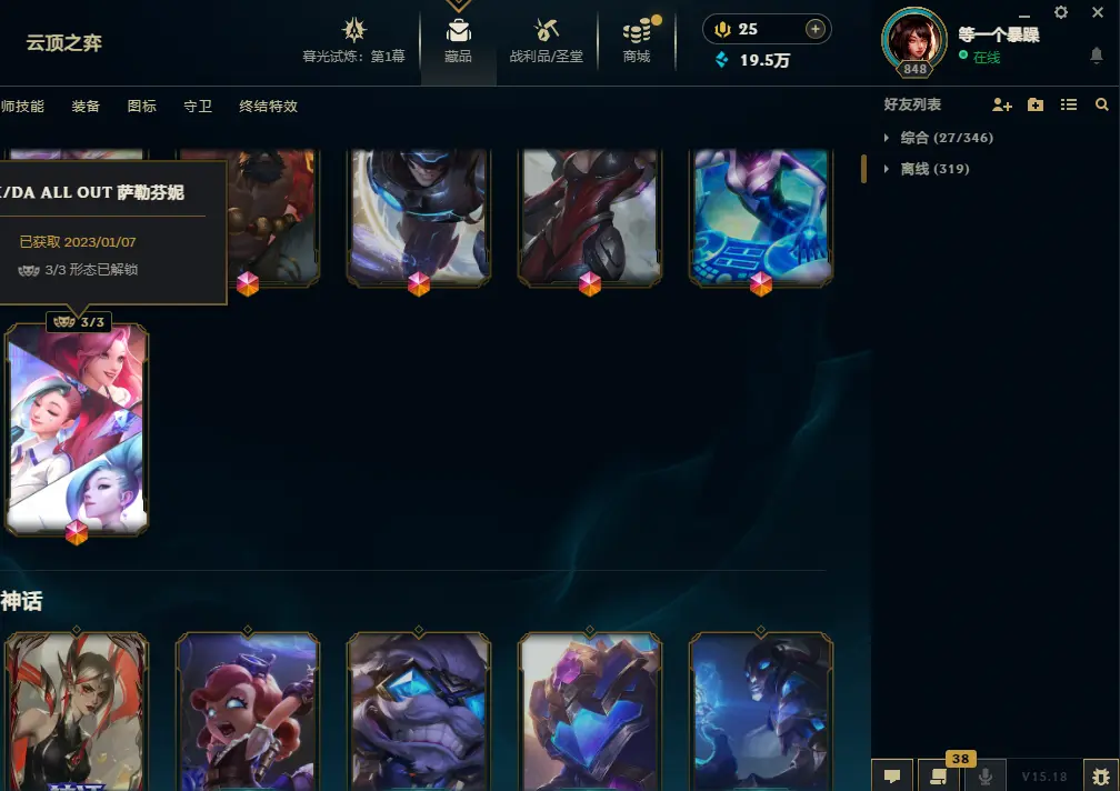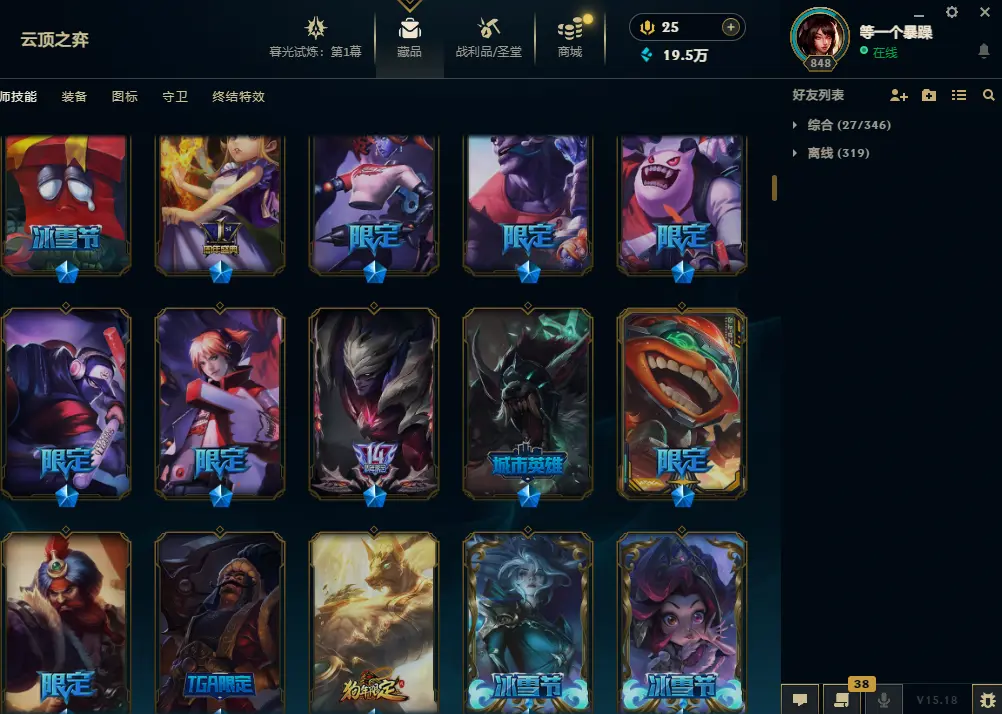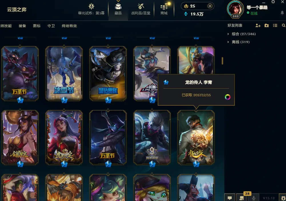【黑色玫瑰】7000皮肤1666原皮炫彩粉龙瞎9终极斩星剑圣战熊骑士冰原酒桶海之歌永恩神龙灵魂冠军套