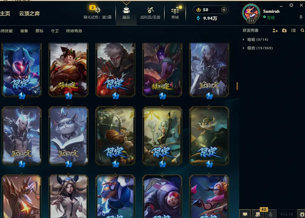 全英雄可排位2000皮肤摄魂斩星剑圣赵云吕布美猴王SKT-EDG-神王诺手天煞劫黎明永恩冰雪节系列套