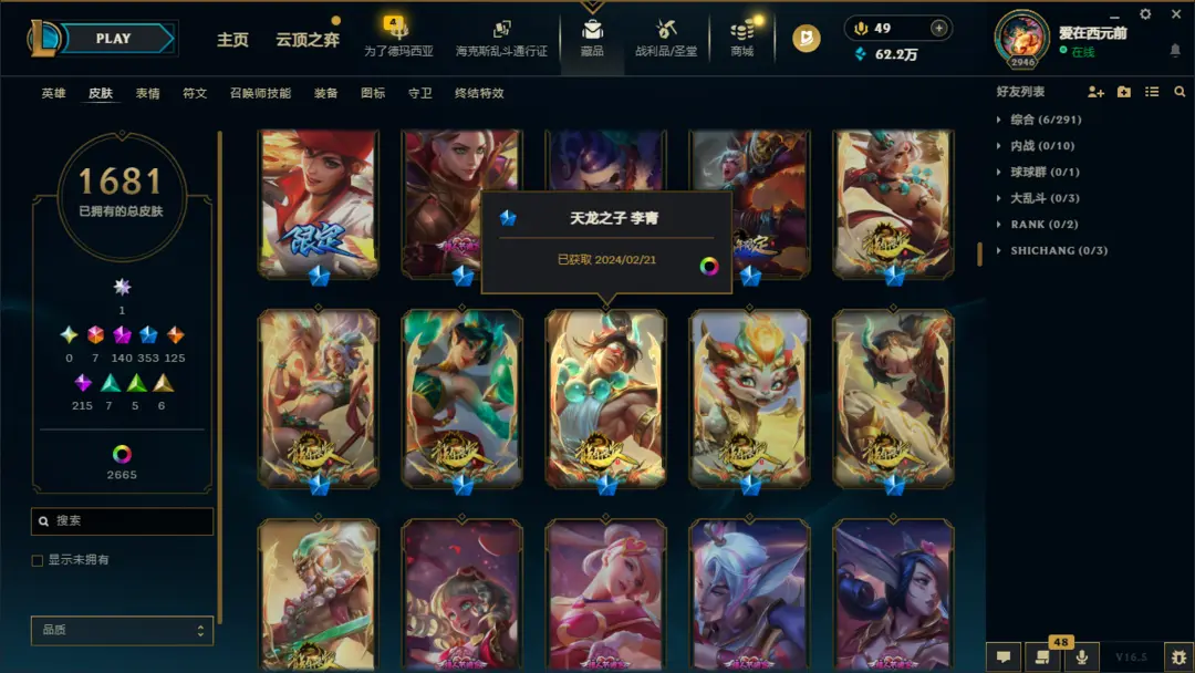 满商城⚡8000皮肤⚡全区第一⚡龙瞎签名版名人堂阿狸⚡150神话⚡全EDG⚡天龙之子⚡海之歌神龙⚡