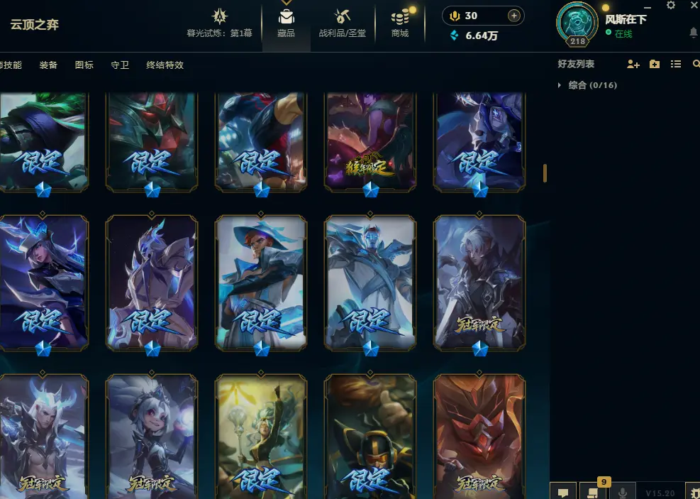 1300皮肤黄金可排位创世亚索6终极殿堂妖姬阿狸全套SKT海之歌永恩DRX剑魔黑夜黎明神龙瞎西部套