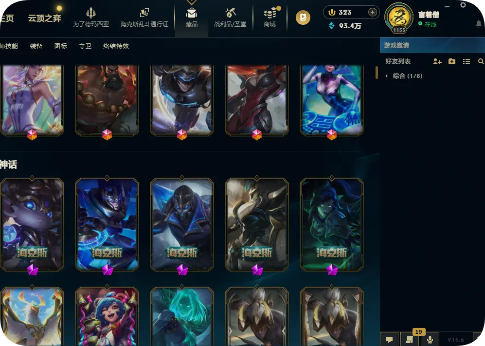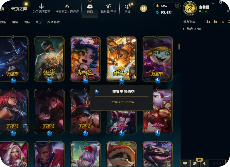 3000皮肤炫彩蓝龙瞎可排位5终极赵云吕布创战纪龙猴哥特龙刀卧虎藏龙全套SKT神王诺手西部套冰雪套