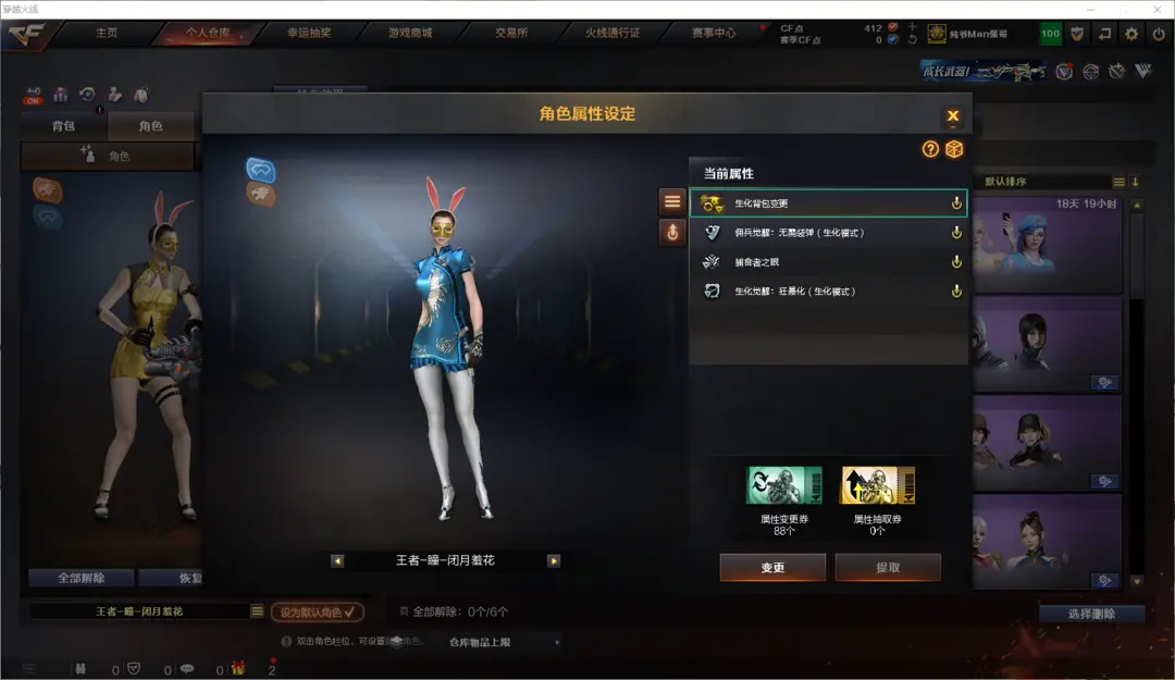 王者角色仅有王者瞳闭月羞花,4生化属性,生化背包变更,捕食者之眼,佣兵觉醒,狂暴化;