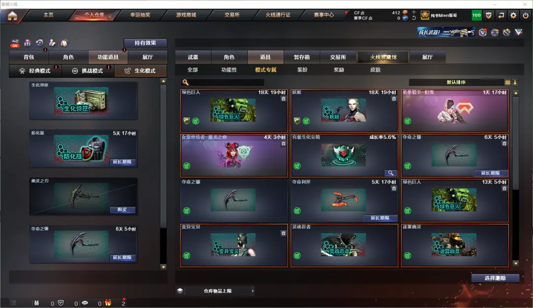 生化全装,步枪弹夹2025年11月26日到期,冲锋枪弹夹2028年5月26日到期,cf会员2028年4月5日到期,其他均为永久包括对讲机;