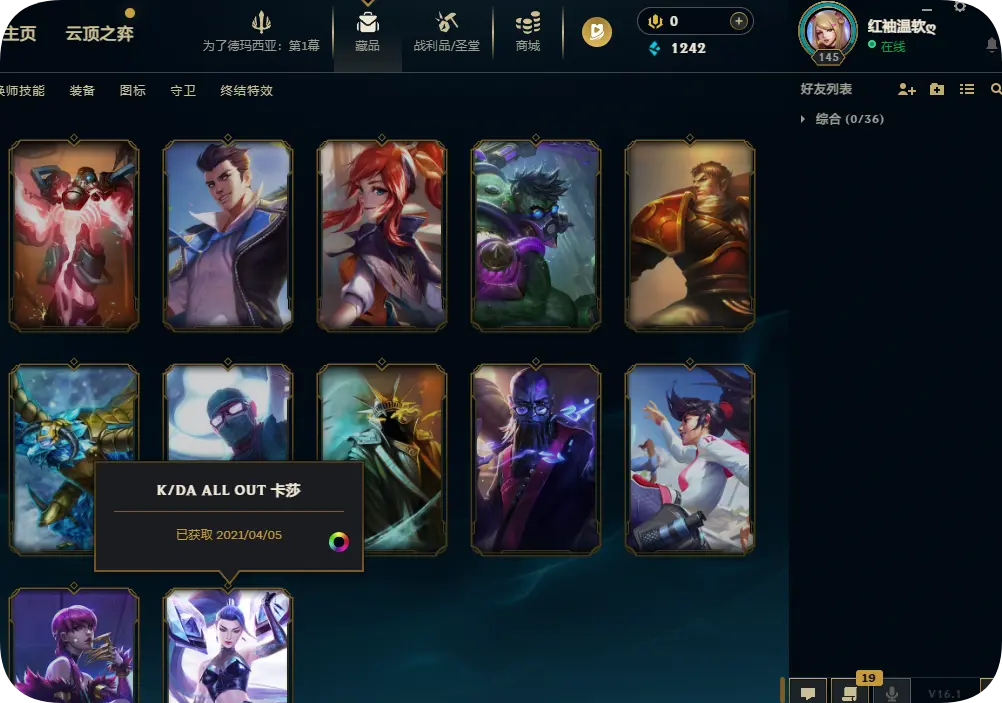 1000皮肤黄金可排位KDA卡莎暗星SKT贾克斯薇恩限定飞机电玩女警冰雪妖姬波比女枪吕布灌篮高手