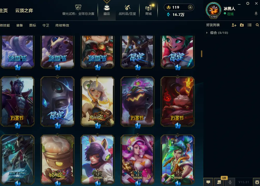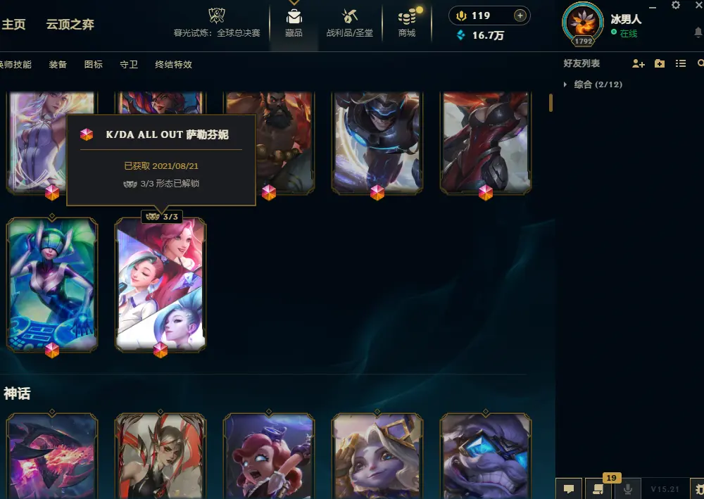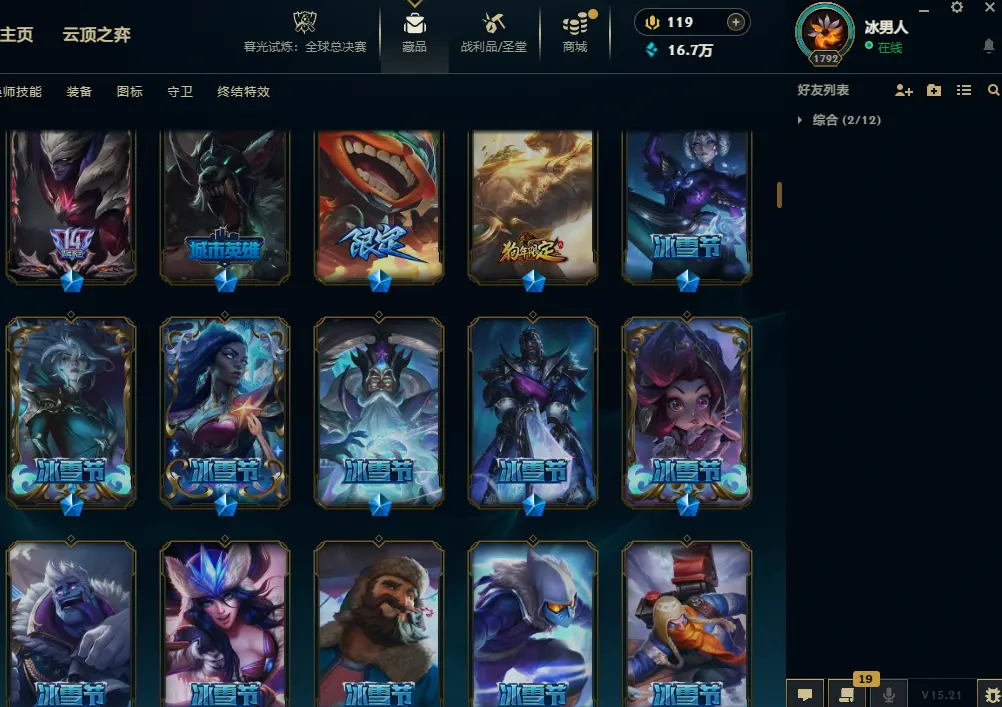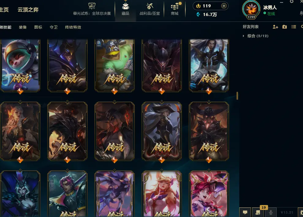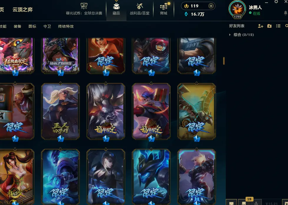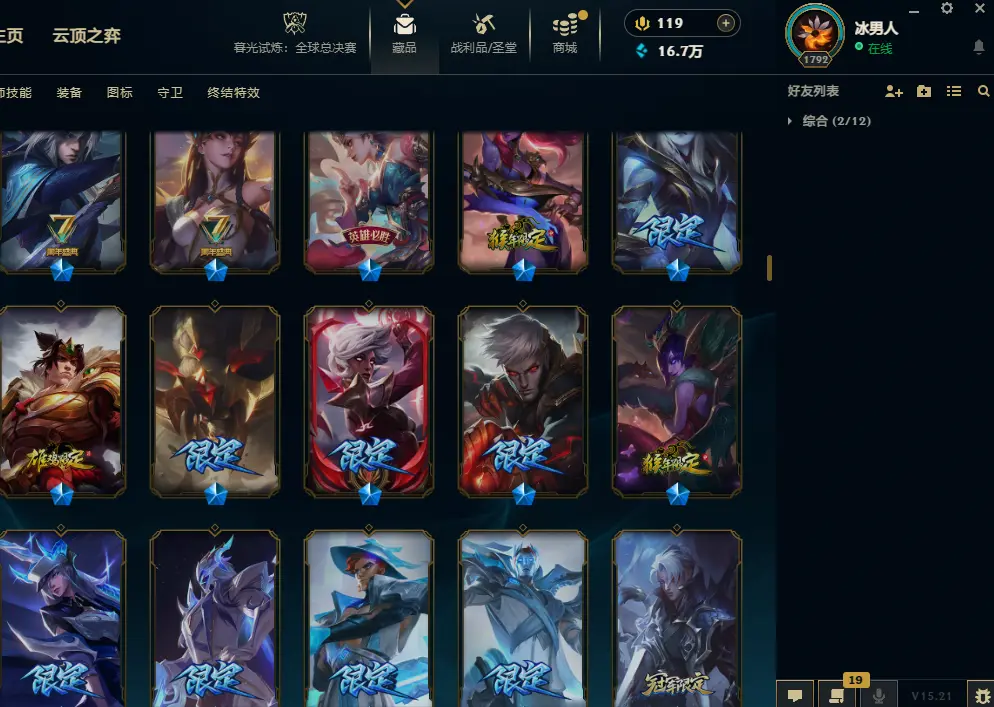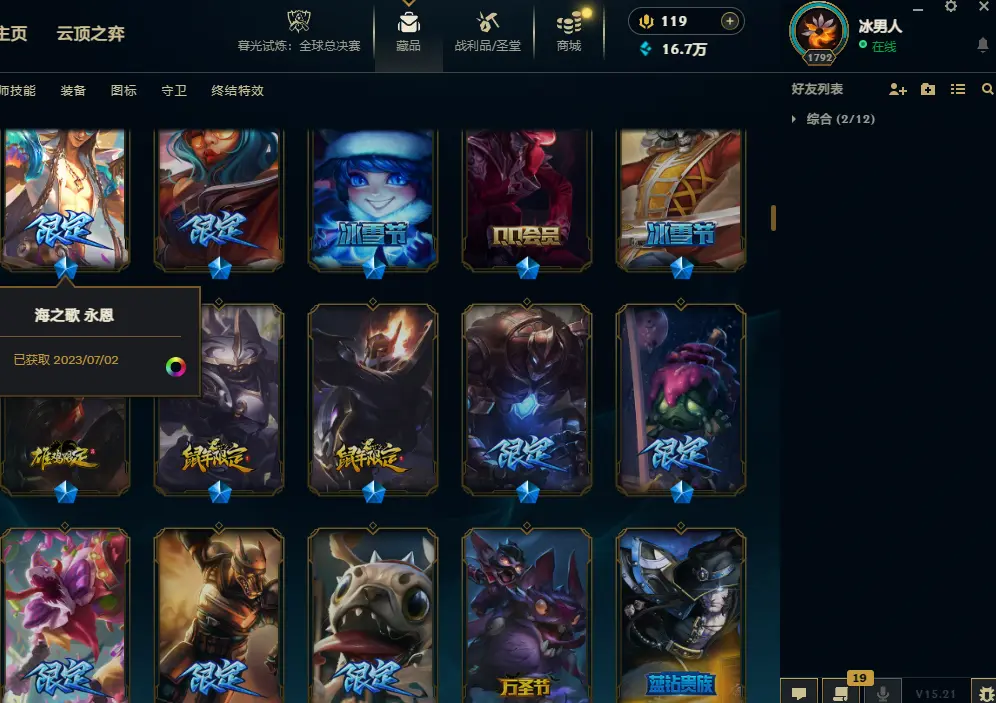 5000皮肤钻石可排位69臻彩满9终极147神话套S赛冠军战队套灵魂西部海之歌永恩套神龙瞎亚索冰雪套