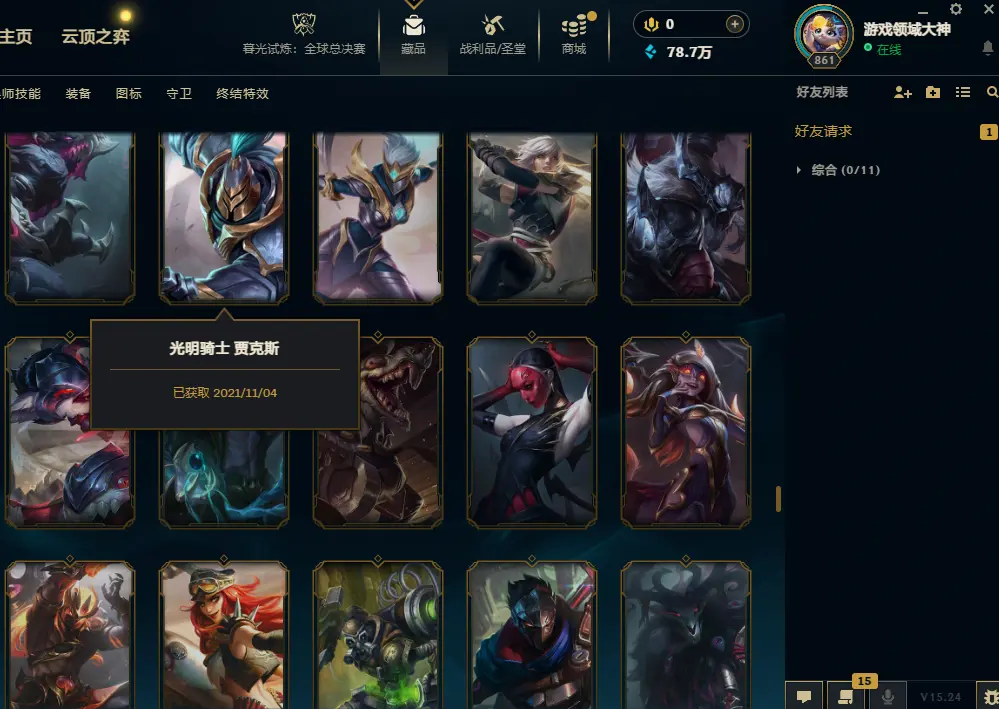 艾欧尼亚700皮肤黄金可排位海之歌灵魂永恩泽丽IG剑姬黎明神王盖伦蔷薇杰斯源计划亚索光明骑士贾克斯