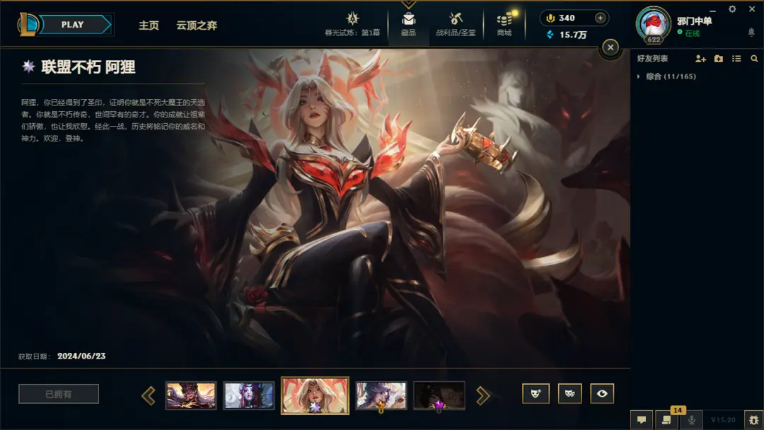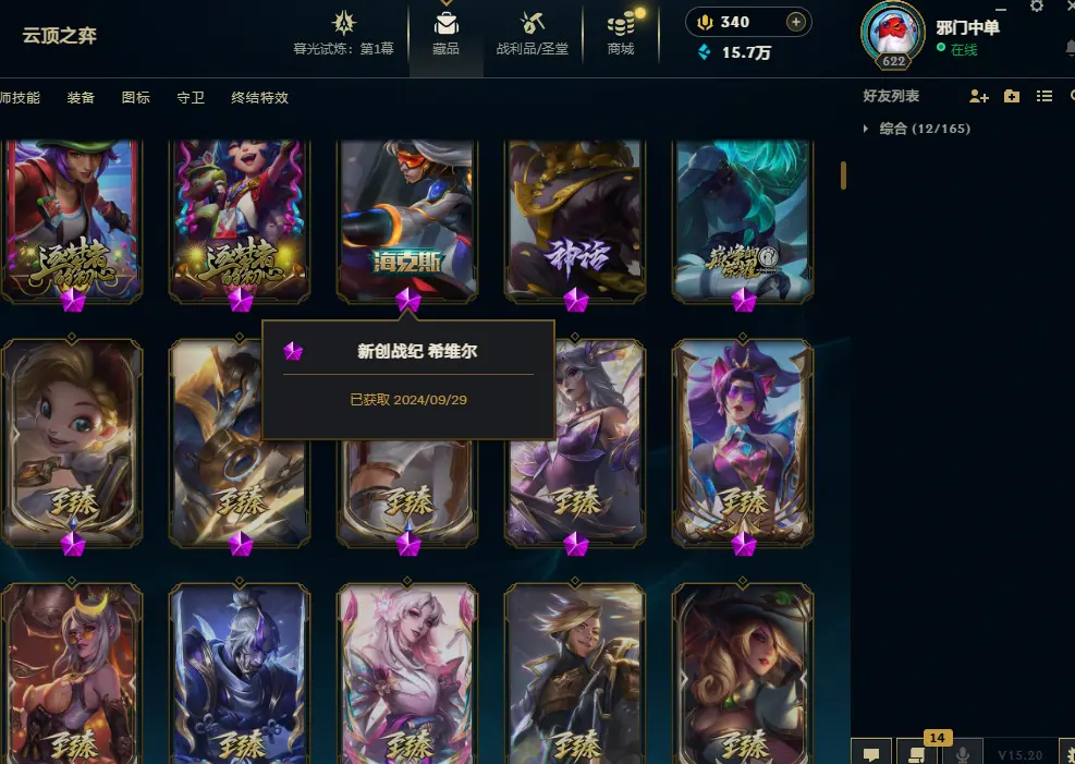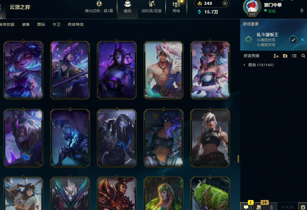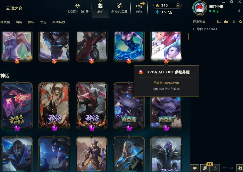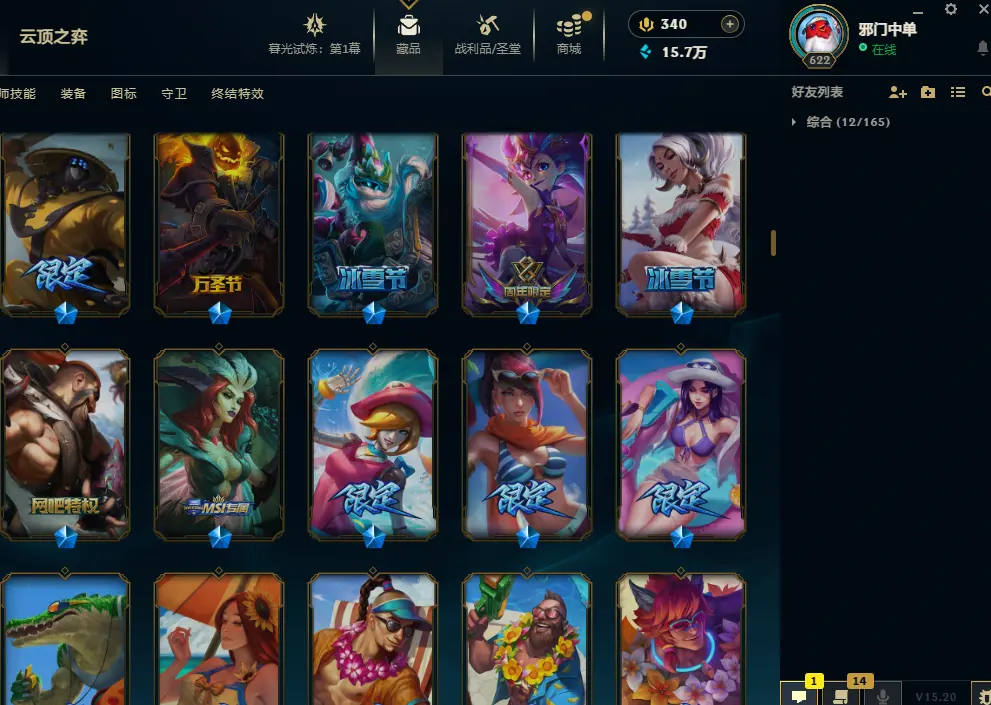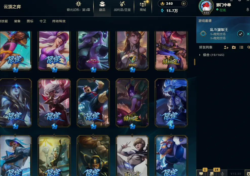 联盟三区 2200皮肤可排位殿堂传奇不朽阿狸8终极全套至臻KDA神龙瞎亚索灵魂永恩吕布创战纪卧虎神王