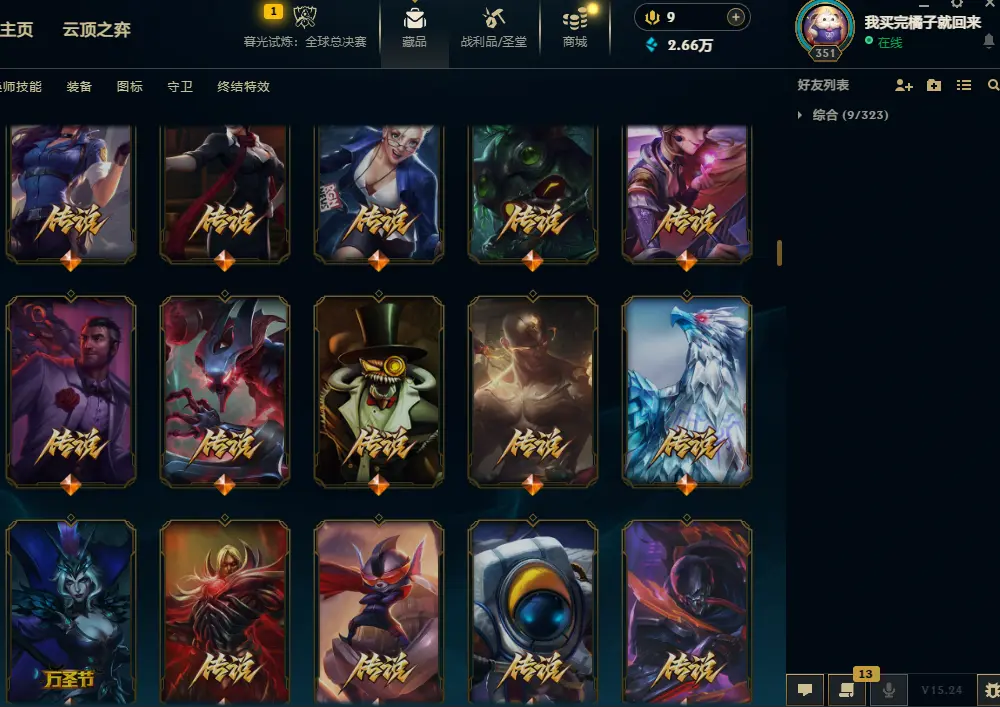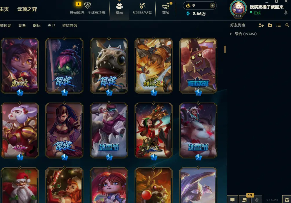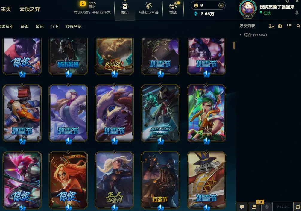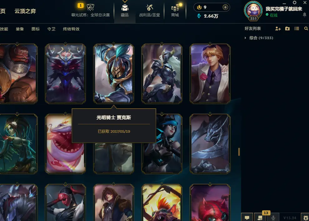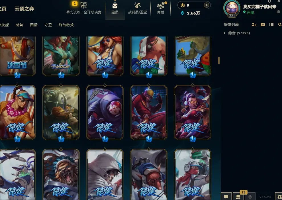 1200皮肤黄金可排位美猴王SKT贾克斯VN瞎子全套SSW冰雪妖姬波比小炮女枪羊年金克斯地底世界