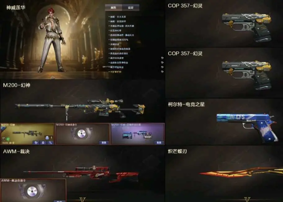 神威莲华♥4防王者春♥2狮子♥蝴蝶斯太尔♥MAC10龙宝.mac鲨鱼♥蝴蝶刀生化爆破满配