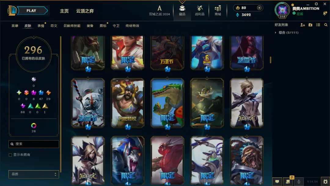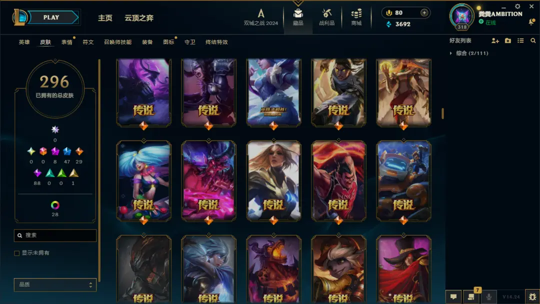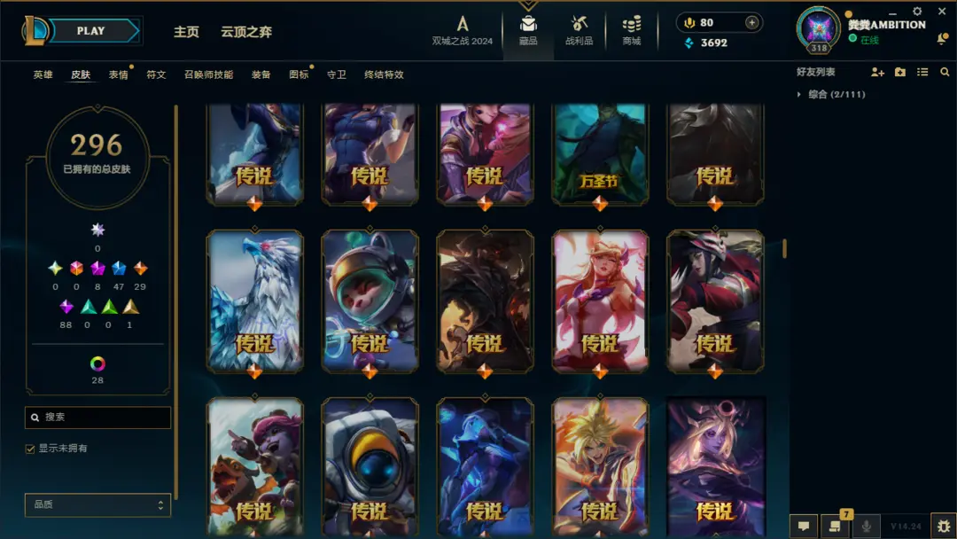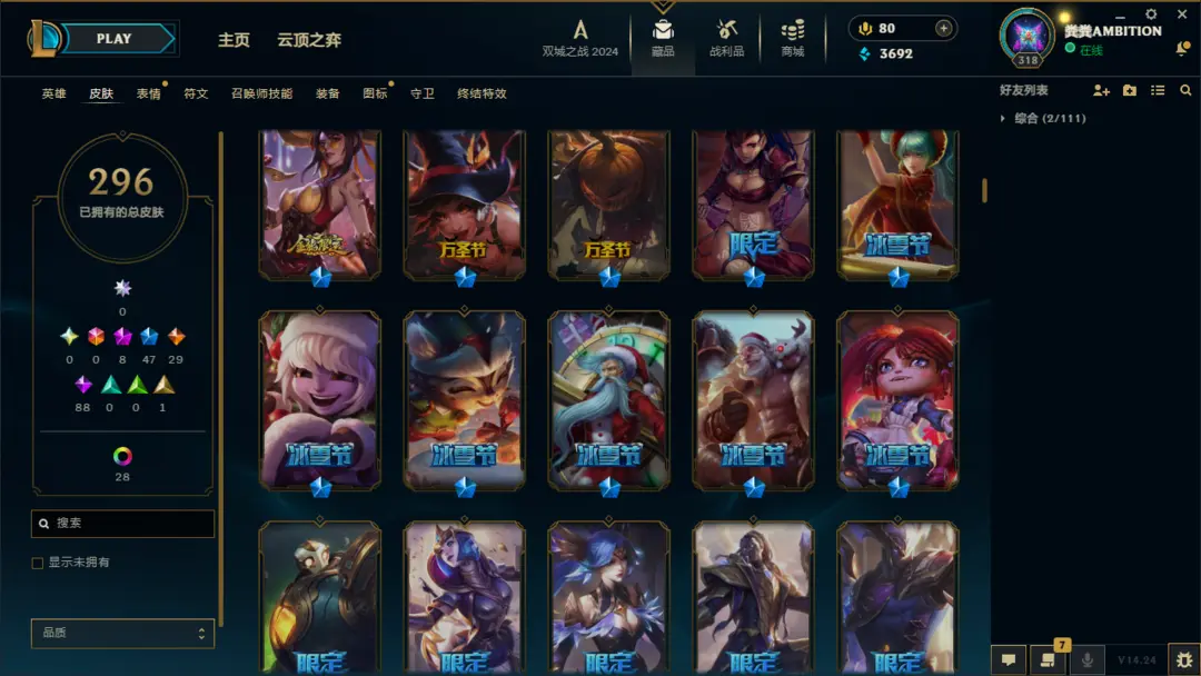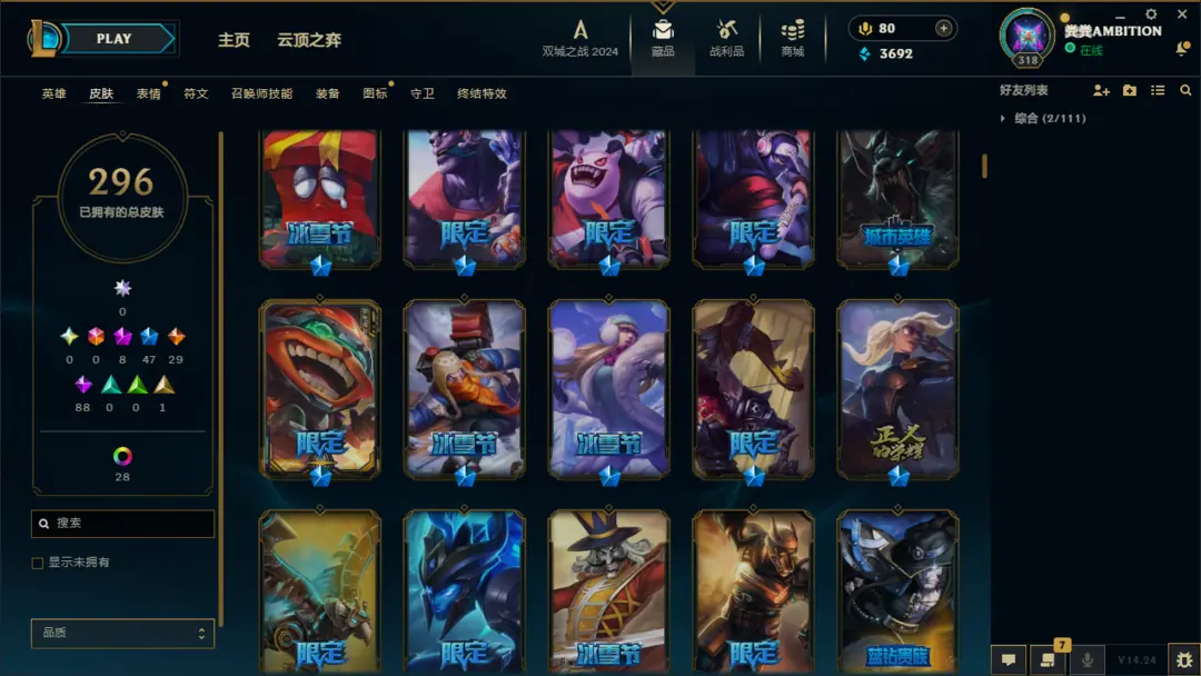 段位准█296皮肤〓10神话至臻〓神王摄魂〓黑夜亚索〓冰雪节限定