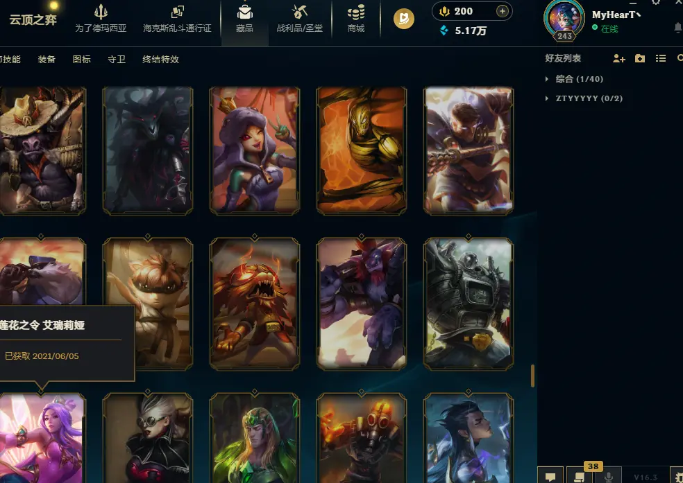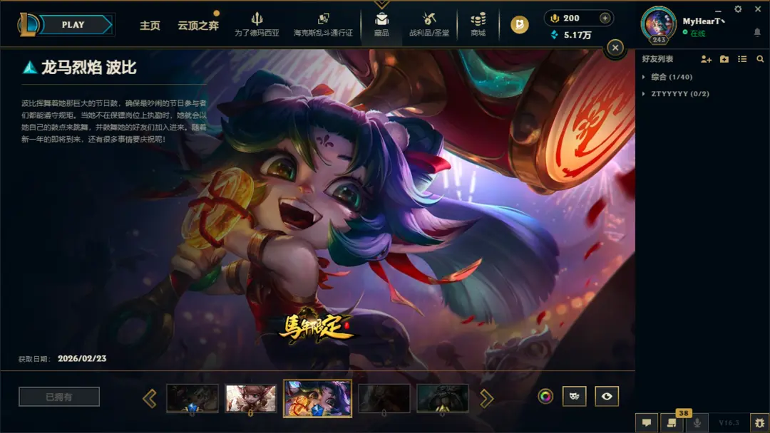 600皮肤全英雄黄金可排位龙马烈焰波比电玩瑞雯冰雪节女枪波比猪妹灌篮高手屠龙潘森星守阿狸