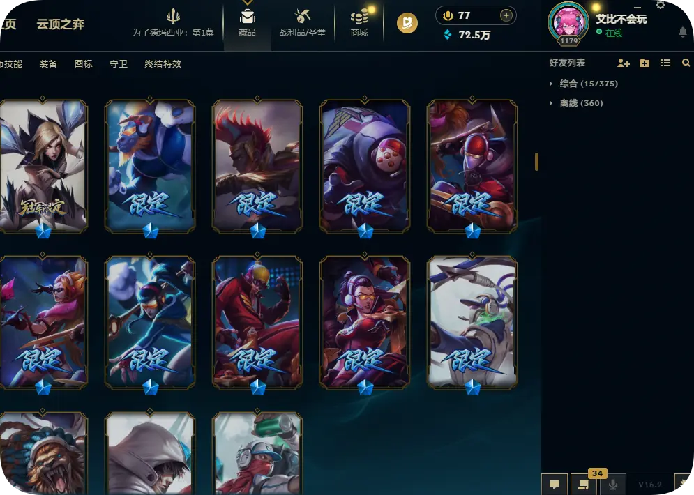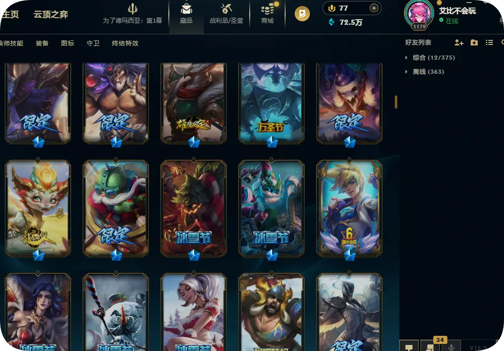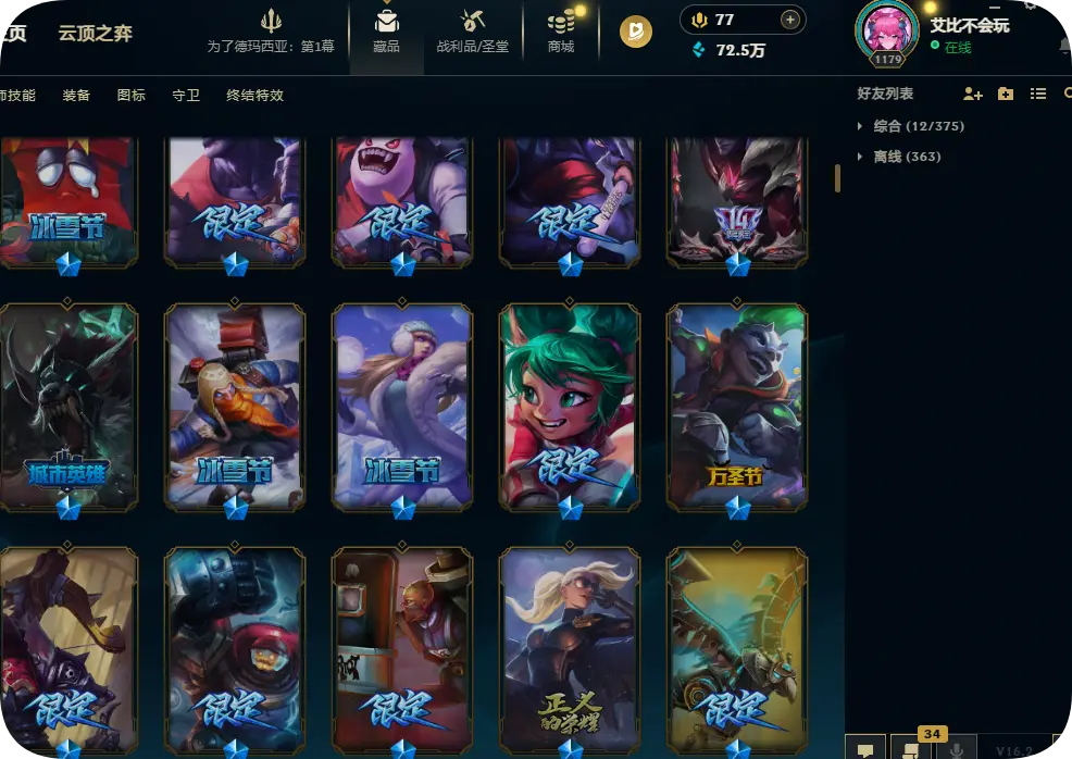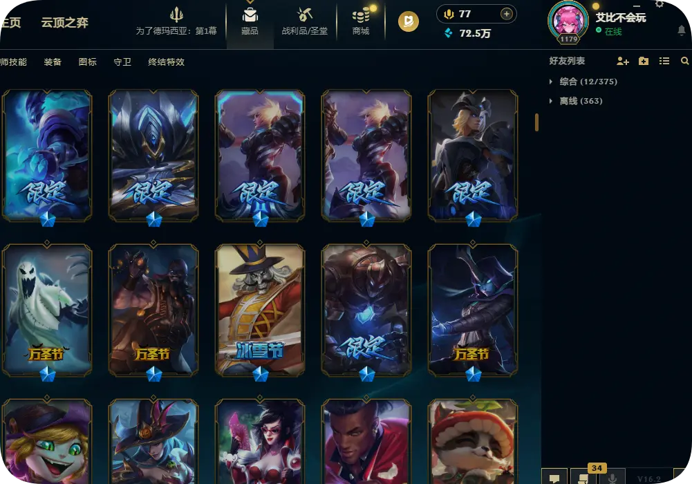 2000皮肤黄金可排位斩星剑圣创战纪摄魂VN龙刀DRX阿卡丽全套SKT灌篮神王诺手司马懿勇者阿狸