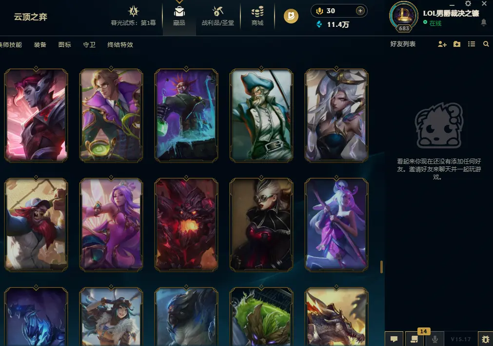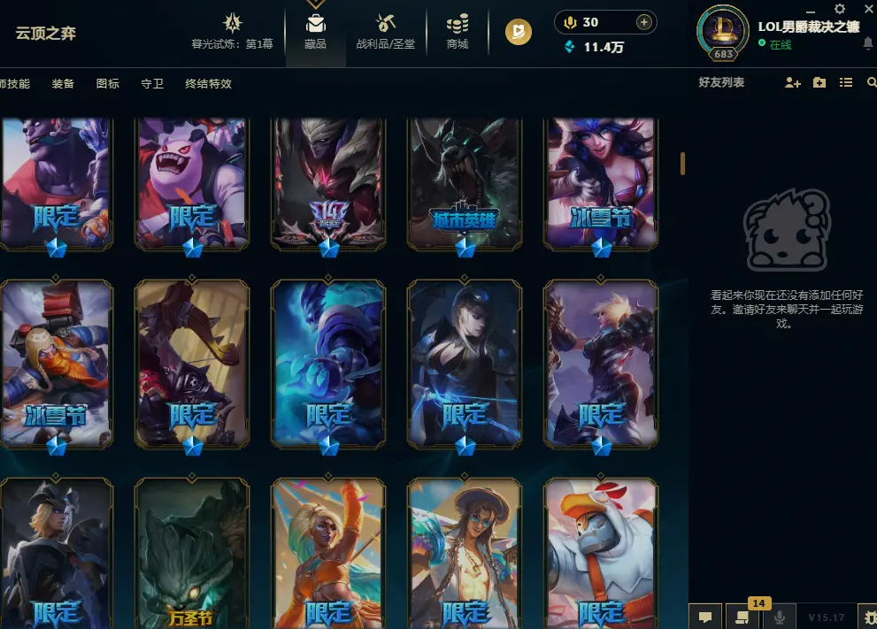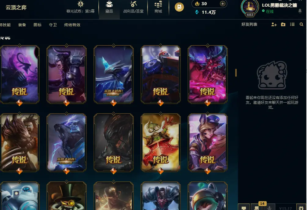 【联盟一区】900皮肤全英雄可排丨殿堂传奇周年套丨海之歌永恩套丨海克斯波比皇子牛丨冠军战队系列套丨