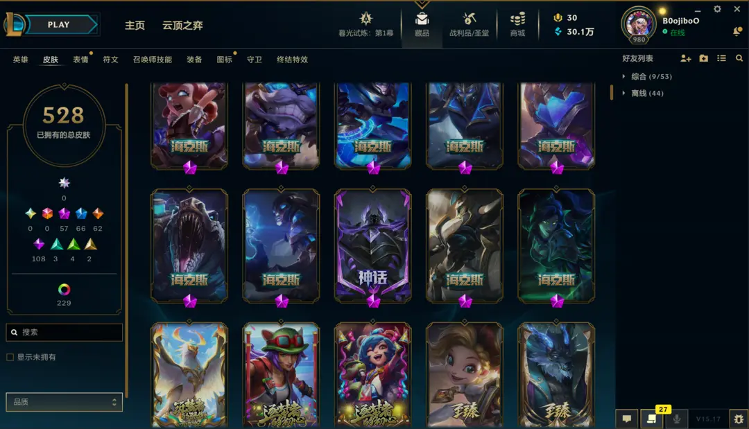 段位准█1200皮肤〓80至臻海克斯〓神王摄魂养蜂人天煞劫〓北极星至高天〓