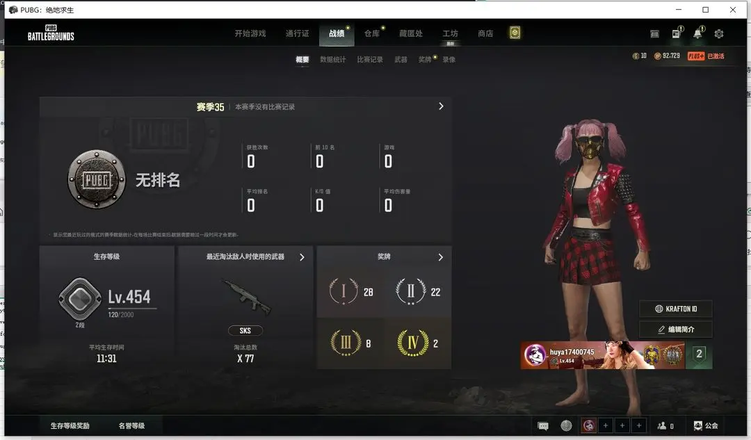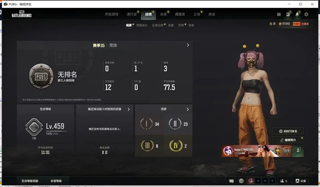 可排位✅3段老兵大老黑橙色运动裤✅黄金面具双马尾✅AKM✅M4✅AKM✅M762✅98K✅M24M