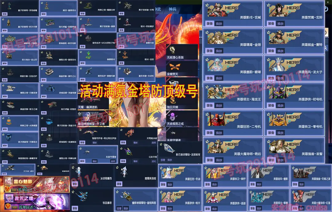 ✅全模式满配活动满氪〖安全模式可帮解除,点上号器的连系号主发安全码 等待会即可〗,全套装全武器 | 全模式满配弹夹卡齐全,新道具全有全氪,全BOSS全角色,62页皮肤50移速树哥✅【五转武装满生命神武流,奶妈奶爸秘境97关,超10,满暴刃极品甜味黄油厨神充能果哥,971基础伤45星光伤满配满基础,45星风神武,45冰神武,红色能量再生全程飞】【✅新增道具】:【涅槃女王+波塞冬女王-潮夕之心,潮夕头饰,冰火金蝰翼,〖返利拉满,神谕套全核心,元初双极羽翼,天命渊瞳戒,波塞冬女王-幻化】【塔防最新皮肤拉满】〖莱娜 | 天命观吾之戒-永寂守望者〗【最新变身女英雄望舒+璃璎丨全息搭建枪+焦油】【英雄影戍-玄械丨英雄焚霄-玄烬丨四臂铠星桓皮肤】塔防最新伴生灵冰霜精灵〖双姝升级蓝雨玄扇双姝,异变残肢,智慧手枪〗【不灭焰甲改+战甲转换器+无尽星河战甲】钢管舞动作,霜霆之怒战盔丨天耀皮肤全套拉满【涅槃幻化,涅槃再临,蚀日天蝰,蛇灵霞帔】【焚霄,璃鸢-金翎,,龙曦皮肤-凌霜-绫羽,升级鳄鱼铁血暴君丨黑武电磁-鹿踏祥云丨混沌-驭浪者-寰宇黑星丨朱雀-NSL怒焰丨暗星黑冕 | 日月两仪-月 | -龙太子海