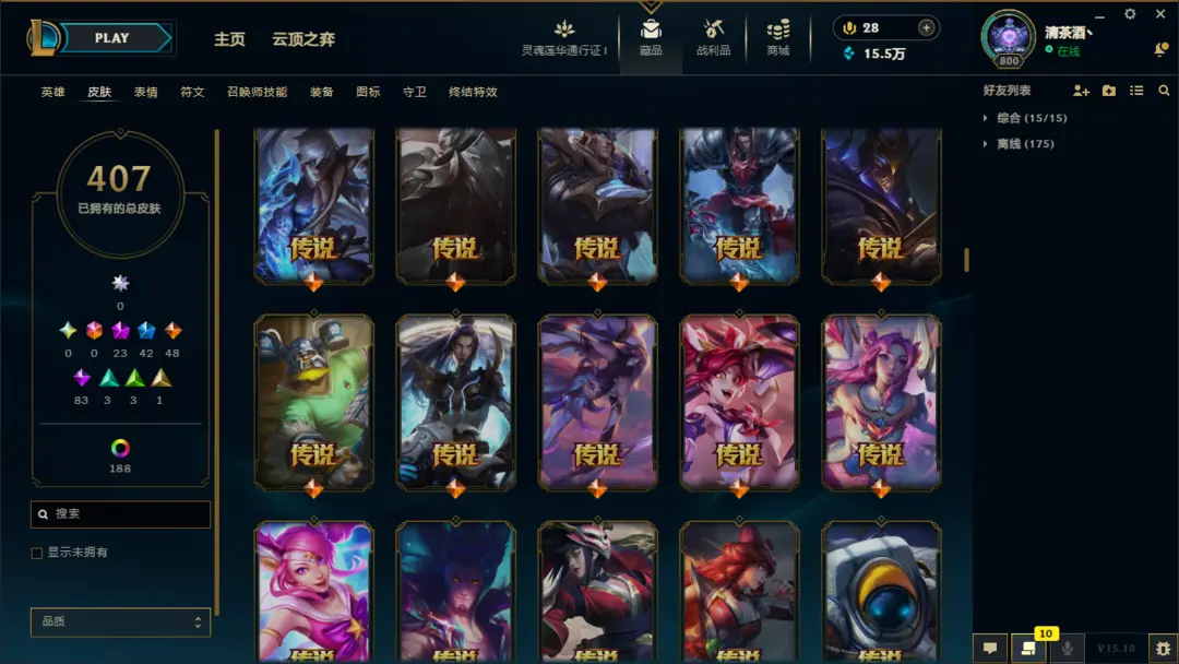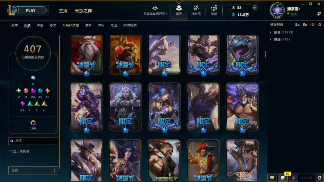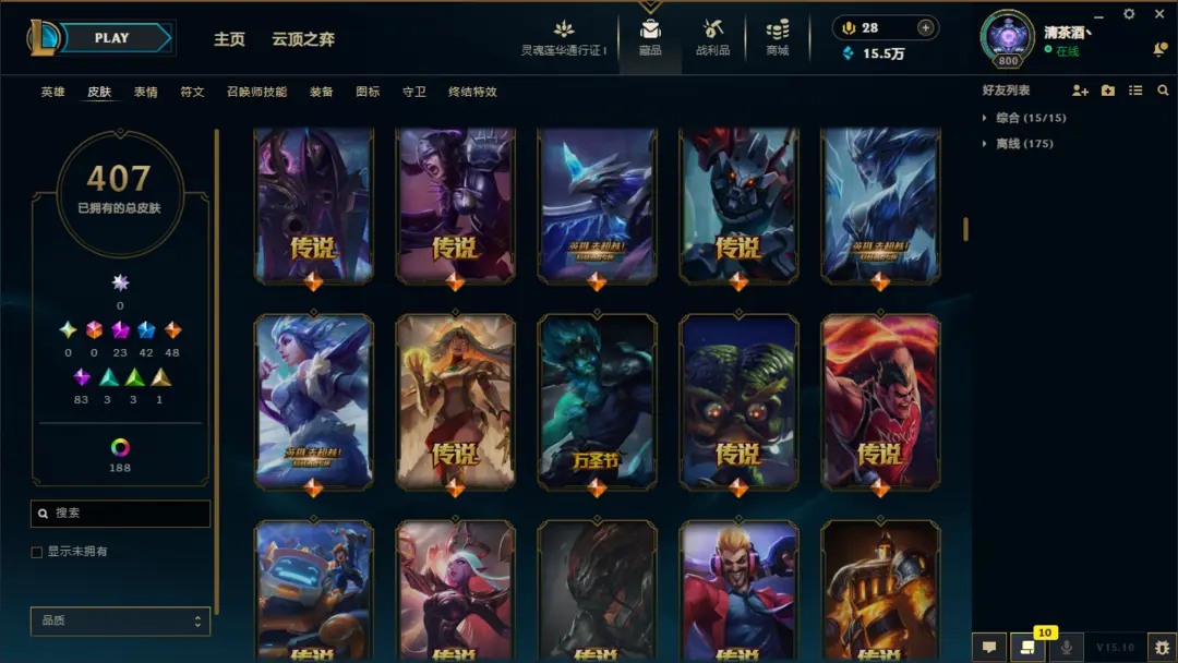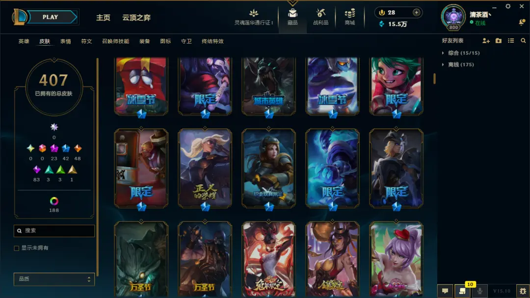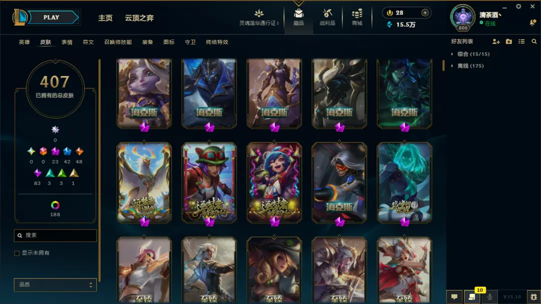 段位准█407皮肤〓30至臻海克斯〓神王摄魂天煞劫〓剪纸仙灵〓黑夜亚索〓星之守护
